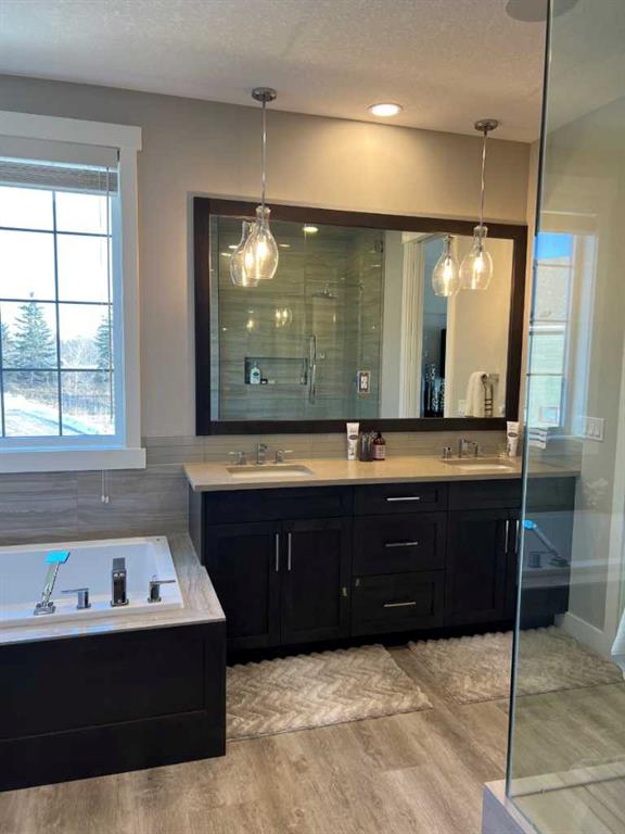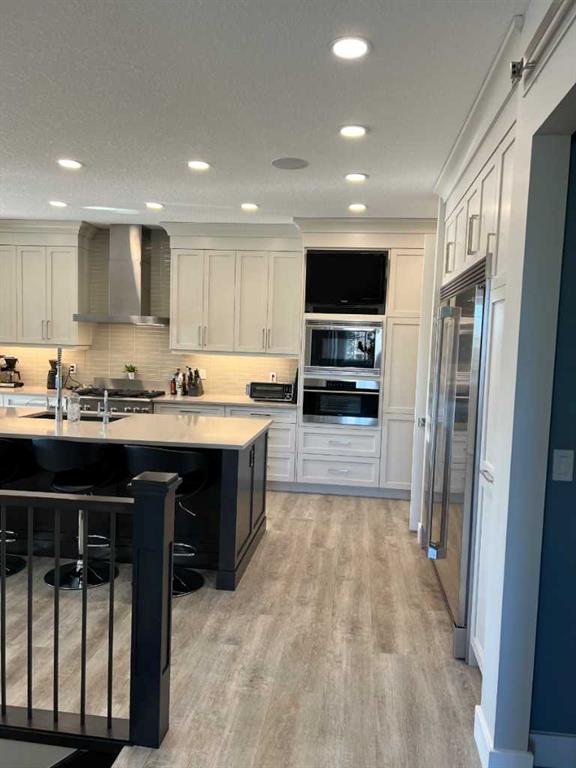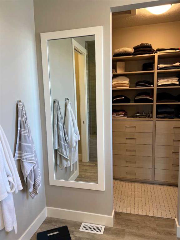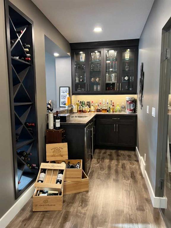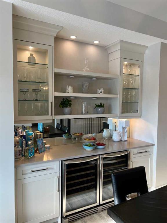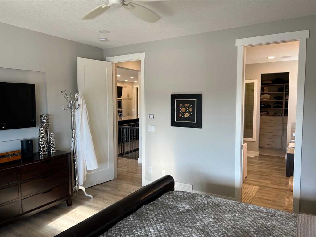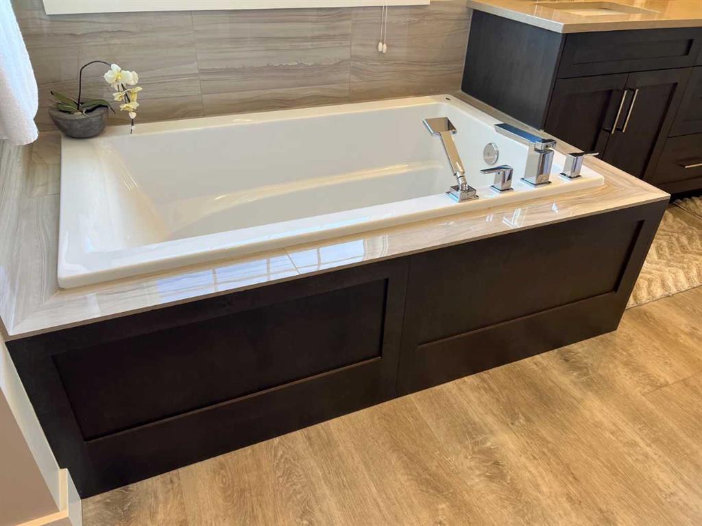 Click Brochure Link for more details. A rare opportunity to own one of the most desirable estate villas in the lock & leave community of Swift Creek Estates, nestled within the beautiful Elbow River Valley. The last comparable (over a year ago) sold in days - and none have come to market since. Built in 2019 and exceptionally lightly lived in, this move-in ready walkout bungalow offers the largest floorplan with almost 3000sqft fully developed, the largest garage, and sits on one of the largest lots (.15 acre) in the community. Positioned on a premium south-facing end lot, the home captures both morning sunrises and evening sunsets, surrounded by the beautiful Elbow Springs golf course and Fisherman’s Lake. $200k in carefully selected upgrades elevate the home well beyond the original builder spec. 10 & 9’ ceilings, upgraded flooring, designer fixtures, extensive custom millwork, and built-in home audio with a multi-zone in ceiling SONOS system create a refined yet extremely comfortable living environment. The kitchen features quartz countertops and an upgraded premium stainless steel appliance pkg with a Wolf steam oven, 36” dual fuel range, full-size fridge and freezer, convection microwave, custom pull-out pantry tower, and extensive full-height cabinetry. The dining area showcases built-in glass cabinetry with dual wine fridges, while the lower level offers a fully appointed wet bar with a custom decorative wine wall, built-in glass cabinetry & beverage fridge — ideal for entertaining. The spa-inspired steam shower is complemented by an RO & remin system with dechlorinated water & softener. The on-demand under sink system provides both hot & cold water and the laundry/mudroom contains sink as well as steam washer & steam dryer. The lower level bedrooms feature custom millwork and both family room & rec room boast fireplaces with custom millwork with mesh-cabinetry and hidden electrical for audio components. Built-in mirrors and art niches throughout. Central A/C as well as full-power screens on the upper deck create a true 3-season outdoor living space. The oversized, heated double garage is a standout feature, complete with hot & cold water, dog wash station, full ProSlat wall system, and commercial-grade shelving & can easily accommodate a lift for car enthusiasts. Professionally landscaped with the addition of 27 trees & 55 shrubs, as well as upgraded wifi smart-watering irrigation, the property offers both privacy & beauty. Security is thoughtfully addressed with home monitoring as well as the on-site manned community security — ideal for a lock-and-leave lifestyle.