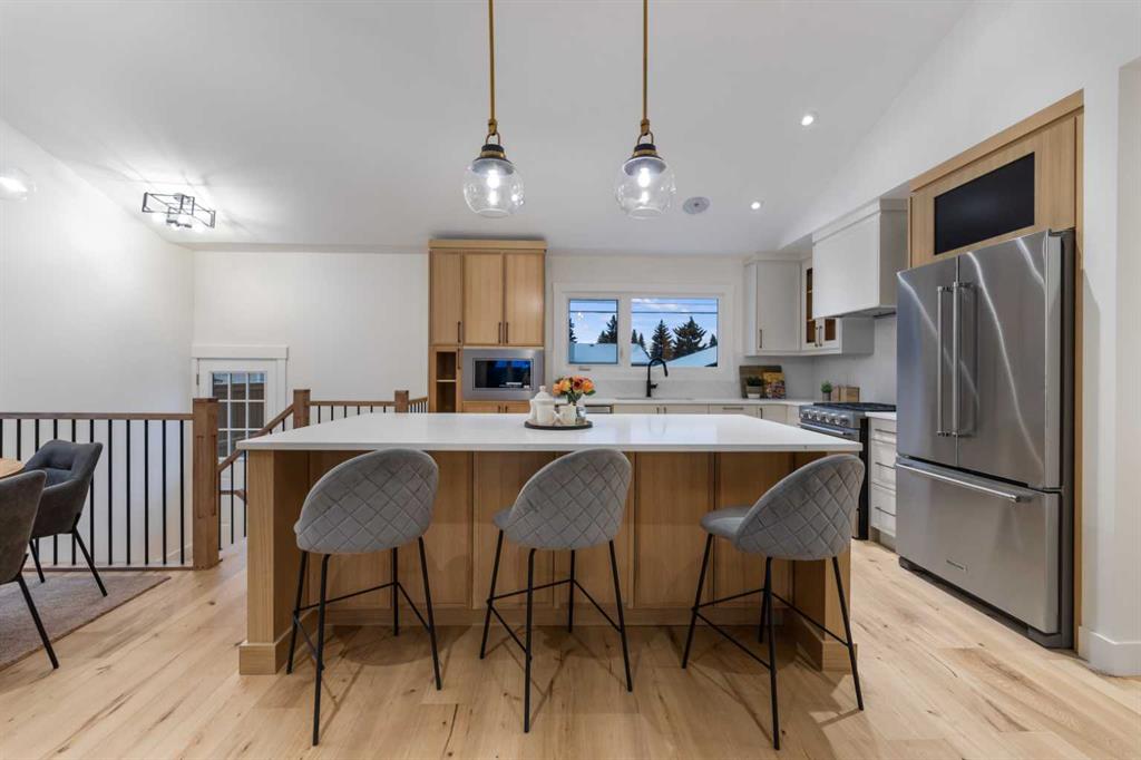 LARGE LOT | RENOVATED INSIDE AND OUT | BRIGHT & SPACIOUS | MODERN OPEN CONCEPT | 4 BEDS & 3 FULL BATHS | GYM | WET BAR | NEW AIR CONDTIONER | HEATED ENSUITE FLOOR | STEAM SHOWER | OVERSIZED DETACHED GARAGE.Welcome to your dream home in the sought after community of Lake Bonnavista! Fantastic location situated on a Large lot and walking distance to St.Boniface School and Lake Bonnavista School. This stunning home is completely remodeled with unlimited upgrades and features, with all the city permits and Engineer consultation, to give you the warmth of a home .Bright and spacious main floor with vaulted ceiling features a large front window which gives you plenty of sunlight and features a modern open concept with a living room, a cozy fireplace & a dining room. The brand new , elegant and tastefully designed kitchen is a dream for anybody and includes a large center island, premium quartz countertops, stainless steel appliances, gas range , and a lot of storage space,and above all a security camera screen for your security. The Oak railing adds more to the beauty of this home. Moving further, you are greeted with a primary bedroom with an attached 5 piece ensuite/w steam shower and walk in closet with lot of storage space for his and her. There is another good-sized room with a pocket door to the 4 Pc common washroom and a stackable laundry on the main floor for added convenience. The lower level has a large family room, a wet bar with fridge and a large gym with rubber floor. 2 additional bedrooms and a full washroom complete this floor. To add to all this, all the rooms in the basement have legal-size windows for added light. All new concrete in the front and back. The list goes on with a new hot water tank, roof shingles, siding, hardwood flooring , carpet, new plumbing,new electrical,etc etc . A must-see home.....Please call your realtor and book your showing.