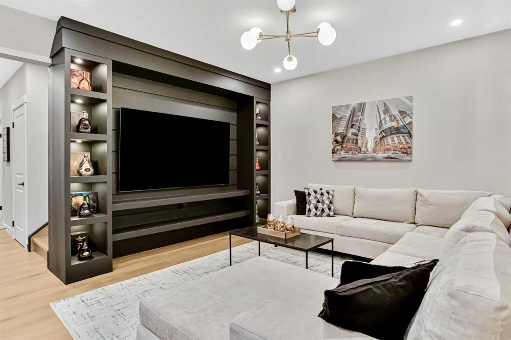Inside, the main level offers beautifully defined yet connected living zones. A dedicated home office provides quiet focus, while the enclosed flex/media room with French doors is ideal for kids study, gaming, or additional lounge space. The inviting family room with modern fireplace flows seamlessly into the gourmet kitchen - complete with built in appliances, gas cooktop, quartz countertops and a walk through pantry - creating the perfect setting for both daily life and entertaining. Upstairs, the primary suite is a private retreat featuring a spa inspired ensuite with jetted tub, rain head shower and generous walk in closet. Three additional bedrooms provide flexibility for growing families - one with its own private ensuite, while the remaining two share a well appointed full bathroom. A bright bonus room overlooking the pond offers the perfect space for movie nights or relaxed family time, and the upper level laundry room adds everyday convenience. The fully finished basement is designed for entertaining, showcasing a large recreation area, custom wet bar, games space, fifth bedroom, full three piece bathroom and convenient side entrance access - offering versatility for guests or extended family. Additional highlights include custom mudroom built ins, heated garage with epoxy flooring, central air conditioning, water softener and elevated finishes throughout.