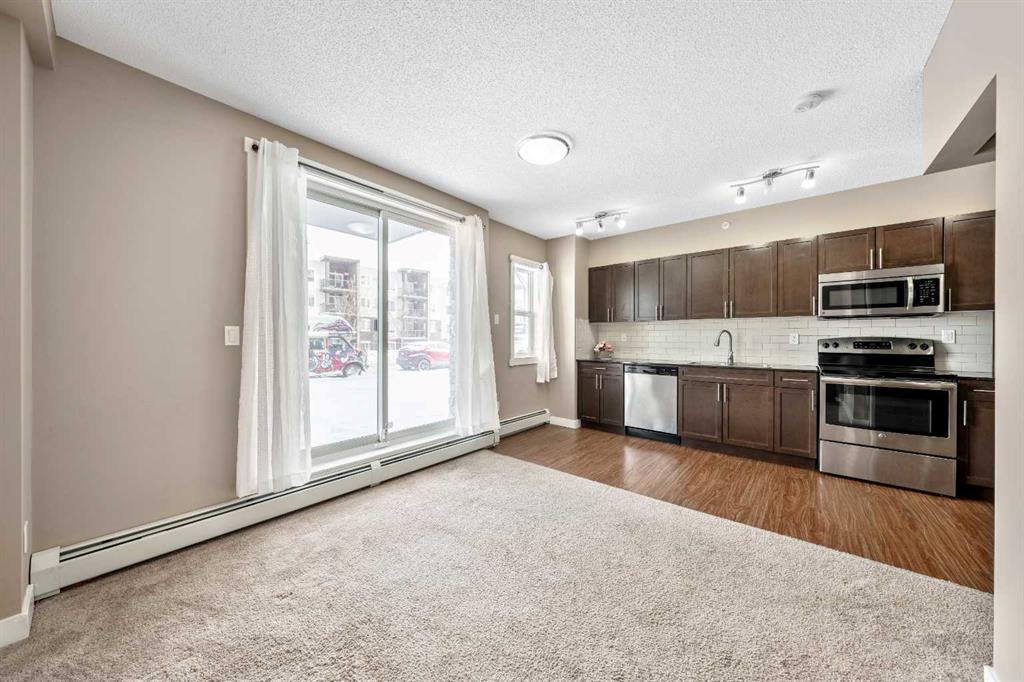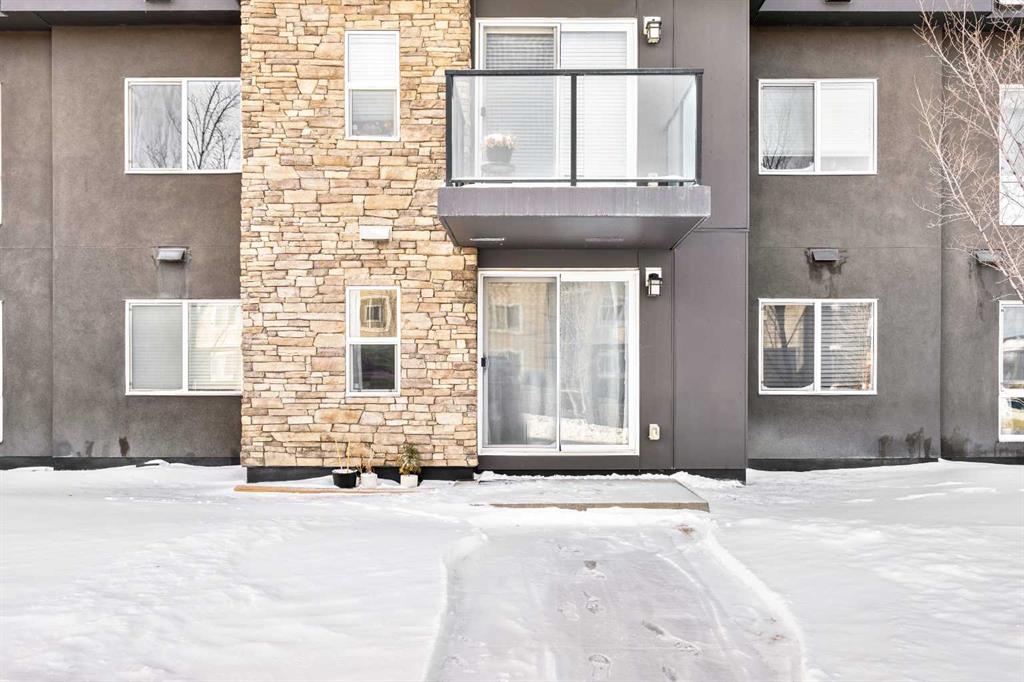 Welcome to this beautifully maintained ground-floor two-bedroom condo in the desirable community of Kincora! This bright, open-concept unit showcases granite countertops, stainless steel appliances, durable laminate flooring, and plush carpet for added comfort. Large sliding glass doors off the living area fill the space with natural light and open to a private patio—perfect for summer BBQs and entertaining guests. The spacious primary bedroom features a stylish corner barn door, adding a unique touch of character. A generous second bedroom, full bathroom with a tiled shower, and convenient in-suite laundry complete the thoughtfully designed layout. This well-managed building offers the added value of a titled underground parking stall and a titled storage locker. Ideally located with quick access to Stoney Trail and just minutes from shopping centres, parks, schools, and public transit, Kincora offers both comfort and convenience. Don’t miss this fantastic opportunity to own in a sought-after community!
