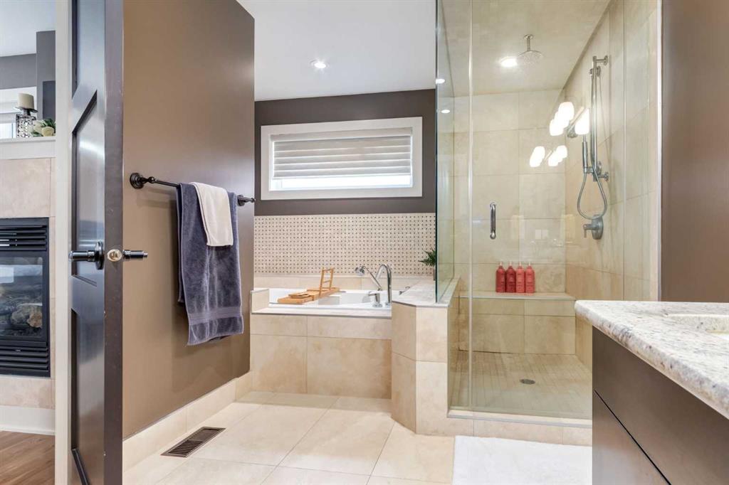 This custom built residence is one of the largest semi-detached homes in the area, offering over 3300 sq ft of developed, high end living space across the three beautifully finished levels. From the thoughtful design to luxurious finishes, every detail of this home is tailored for comfort, style and function. Perfectly situated just off 17th Avenue, enjoy quick access to boutique shopping, vibrant restaurants, public transit, schools, cycling routes and major road ways. Only minutes to Shaganappi Pointe CTrain station and a short walk to the Bow River pathways - ideal for biking, running and walking. Additionally Highway 1 is just around the corner - your fast track to the Rocky Mountains! The main floor features an open concept with 9' ceilings. Walnut hardwood and heated Travertine tile throughout, a dual sided fireplace connecting the Great Room and Nook as well as extensive built-ins, custom cabinetry and a stunning 9' kitchen island. Welcome to your chefs kitchen featuring high end stainless steel appliances including a 5 burner Thermador gas cook top, wine fridge and Bosch dishwasher. Upstairs you will be greeted by 2 Primary suites, with not one but TWO luxurious spa like ensuites complete with glass showers, soaker tubs, dual sinks, heated floors and granite counters. Expansive walk in closets, and a fireplace. The upper floor also is home to a spacious laundry room and a loft for your home office, complete with built ins and granite counters. The lower level will treat you to hydronic in floor heating under more Travertine tile, a custom espresso/wine bar, complete with more built ins, granite counters and another wine fridge. There is also a third bedroom, another full bath featuring a beautiful glass steam shower. This luxury home sits on an oversized lot, with an oversized heated garage complete with epoxy floors. Central A/C, water softener, vacu flo system, Hunter Douglas custom blinds, hardwired sound system, glass railings on the exterior entrances, fully landscaped and fenced yard. Please note, this home was also constructed with a concrete party wall! There are too many extras in this home to describe, it is a definite must see!! This property will not last long - Book your showing soon!!