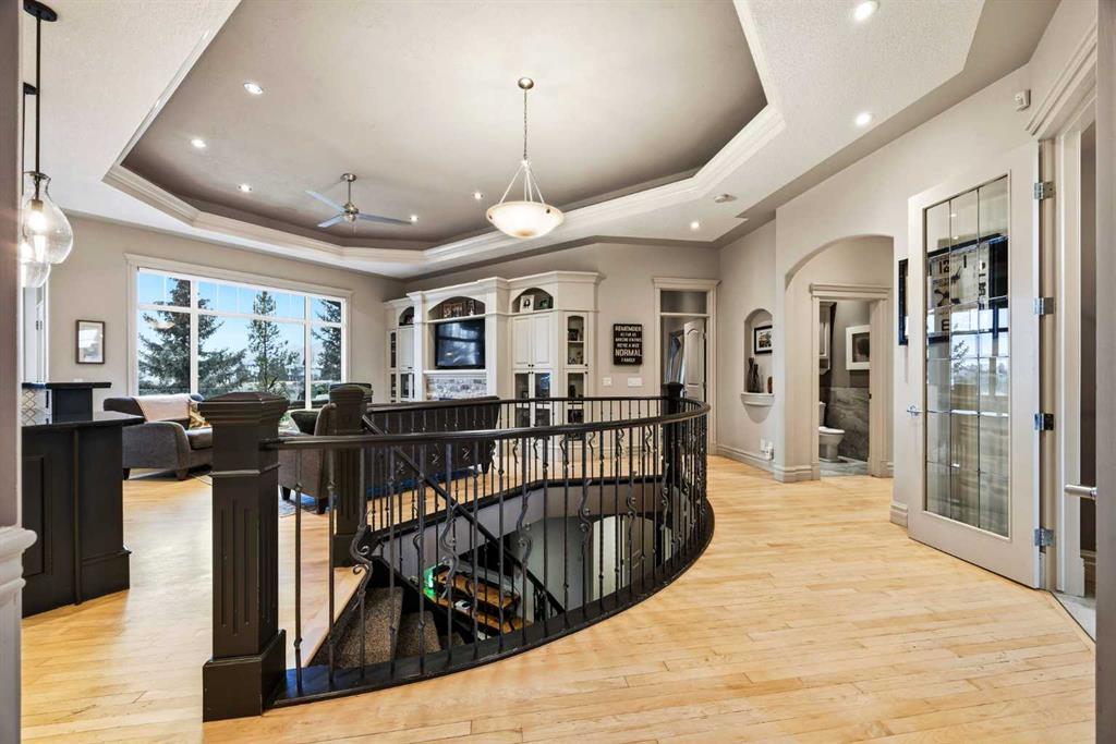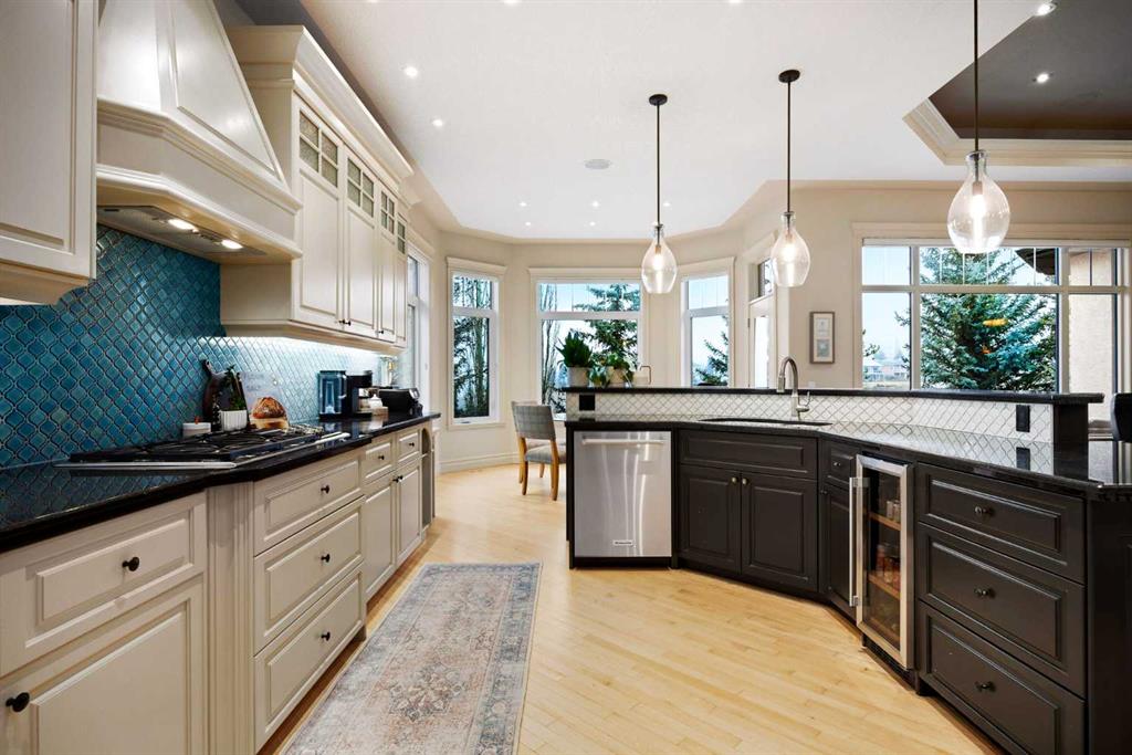 Discover the perfect blend of luxury, comfort, and breathtaking scenery in this beautifully updated Bungalow situated on the Prestigious Gleneagles Landing, boasting expansive mountain views, a fully finished walkout basement, and a triple attached garage. Offering an unparalleled living experience through a perfect main floor layout, with the kitchen, living room, and primary suite all designed to frame the stunning, elevated mountain vistas. This four bedroom home maximizes living space, and includes two and a half bathrooms which include a luxurious five-piece ensuite and a spacious four-piece bath on the lower level which hosts a relaxing steam shower. The chef’s kitchen features granite countertops, newly painted cabinetry, a custom backsplash, a Wolf gas range, and a new double Dacor wall oven. Enjoy open-concept living with luxury hardwood floors, a tray ceiling, and new lighting throughout. An open spiral staircase leads to the lower walkout level and serves as an elegant centrepiece of the home. The lower level offers unobstructed mountain views, and features a custom wet bar, a large living area, new carpet, a dedicated gym space with access to the beautifully landscaped and fenced backyard. Additional exterior features include underground irrigation, a private fire pit area, and a hot tub for relaxing while taking in the views. Well maintained with a surplus of upgrades including 15 new windows, exterior paint, and a new boiler with six-zone in-floor heating, Central Air Conditioning, and a new water softener. The heated, triple garage has been freshly painted, with new lighting and shelving installed, providing ample space for vehicles and toys. Enjoy the serenity of the mountains, the convenience of a modern, upgraded home, and the privacy of a fully landscaped, scenic lot. Don't miss this rare opportunity to own a turnkey home with one-of-a-kind views. Enjoy an elevated lifestyle with miles of pathway just outside your door with easy access to Glenbow Ranch Provincial Park, Golf at the Links of Gleneagles just up the street, or enjoy a dinner at the Eagles Nest lounge. Community features also include school buses and COLT (Cochrane’s own on-demand transit) stops nearby. Convenient access to the city, with only a 30-minute commute to downtown Calgary.