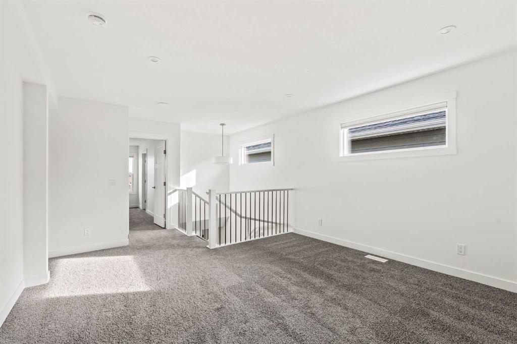 This brand new Oxford model by Brookfield Residential offers exceptional space, thoughtful design, and a fully developed basement - creating a four-bedroom, 3.5-bathroom home that is fully move-in ready in the coveted new community of Rockland Park. With nearly 2,000 sq. ft. of living space above grade and additional professionally finished lower-level living, this home is perfectly suited for growing families and those who value both everyday functionality and entertaining space. The bright front great room features a wall of windows that floods the main floor with natural light all day, while a central fireplace creates a warm and inviting atmosphere year-round. Anchoring the main level is the beautifully designed kitchen, which features a chimney hood fan, a built-in microwave, and an expansive pantry for exceptional storage. The open layout seamlessly connects the kitchen to the dining and living areas - ideal for hosting gatherings or enjoying family time. A versatile flex space perfectly accommodates a home office or study area, while a rear mudroom and 2-piece powder room complete the main level. An open wood railing with iron spindles guides you to the upper level where a central bonus room thoughtfully separates the primary retreat from the secondary bedrooms, offering privacy and comfort. The spacious primary suite provides room for a full bedroom set and features a large walk-in closet along with a private 4-piece ensuite including dual sinks and a walk-in tiled shower. Two additional bedrooms, a full bathroom, and a conveniently located laundry room with storage complete the upper floor. The professionally developed basement expands the home’s versatility, adding a fourth bedroom, a full bathroom, and additional living space perfect for guests, a recreation area, a home gym, or a media room. Outside, the sunny southwest backyard provides excellent natural light and outdoor enjoyment, maximizing optimal sunshine all year long. The private backyard includes a gas line for a BBQ and a double detached garage! Backed by both the Builder Warranty and Alberta New Home Warranty, this move-in ready home offers comfort, space, and long-term peace of mind in a brand new property.