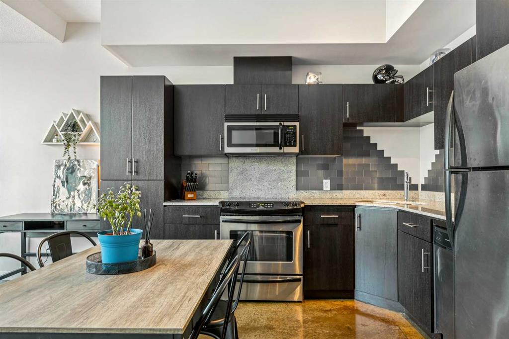 Wake up every day to postcard-worthy views of Calgary’s downtown skyline in the highly sought-after Colours building. This desirable two-bedroom floorplan showcases stunning floor-to-ceiling, north-facing windows that flood the space with natural light and frame incredible city views—an exceptional opportunity for buyers seeking both style and value. Upon entry, you’ll appreciate the polished concrete floors that add warmth and modern character throughout. The open-concept kitchen, dining and living areas offer seamless flow and flexible design possibilities for both everyday living and entertaining. The primary suite serves as a peaceful retreat with captivating downtown views, while the second bedroom easily adapts to your needs—whether as a guest room, work-from-home office, or creative studio. Step outside to your private balcony, complete with a natural gas hookup, perfect for evening barbecues and sunset lounging. Central air conditioning ensures year-round comfort, even on the hottest summer days. Residents of Colours enjoy communal bike storage, rentable private storage units, and a shared outdoor space. Downstairs, indulge in cocktails at the award-winning Proof, or pick up your favorite bottle from Vine Arts before settling in for a cozy night at home. You’re also just steps from First Street Market and acclaimed restaurants like Pat & Betty, Ten Foot Henry, and Calcutta Cricket Club. Enjoy walking access to the Stampede Grounds, the Scotiabank Saddledome, the upcoming Entertainment District, and everything the vibrant Beltline has to offer. Ideal for young professionals, first-time buyers, empty nesters, or investors, Colours is a short-term rental-friendly building—making this an exceptional lifestyle opportunity and a smart investment. This is downtown living at its finest!