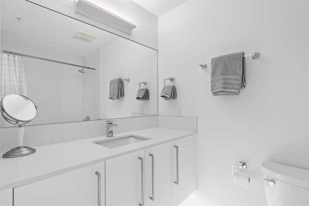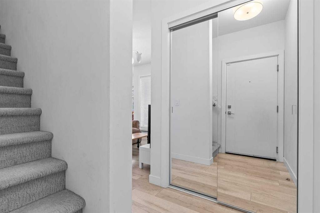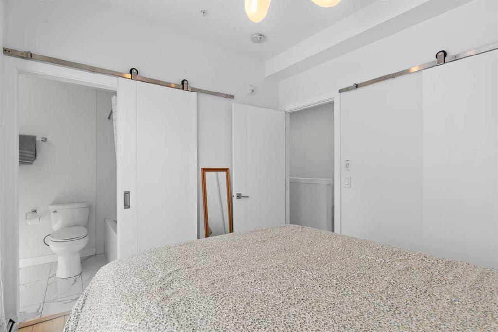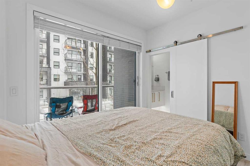 Upstairs, the bright and airy bedroom level continues with 9’ ceilings, attractive barn doors for closet’s and en-suite bath and premium finishes. Both bedrooms enjoy abundant natural light, and the well-appointed upgraded bathrooms carry through the home’s modern aesthetic. Enjoy not one, but two private south-facing outdoor spaces — a main-floor patio complete with gas line for your BBQ, and morning coffee, and a second upper patio, off the primary bedroom, perfect for evening relaxation outdoors. Hosting guests is effortless with convenient street parking right outside your private entrance, two underground visitor stalls, and additional exterior visitor parking. The location is truly unbeatable — minutes to the University of Calgary, Alberta Children’s Hospital, Foothills Medical Centre, and surrounded by boutique shopping, dining, a theatre, and beautiful green spaces connected by wide pedestrian-friendly sidewalks.