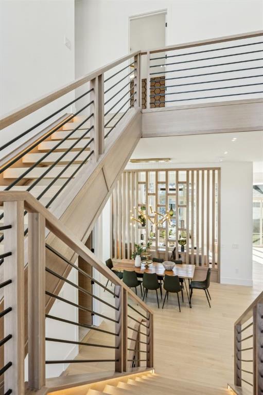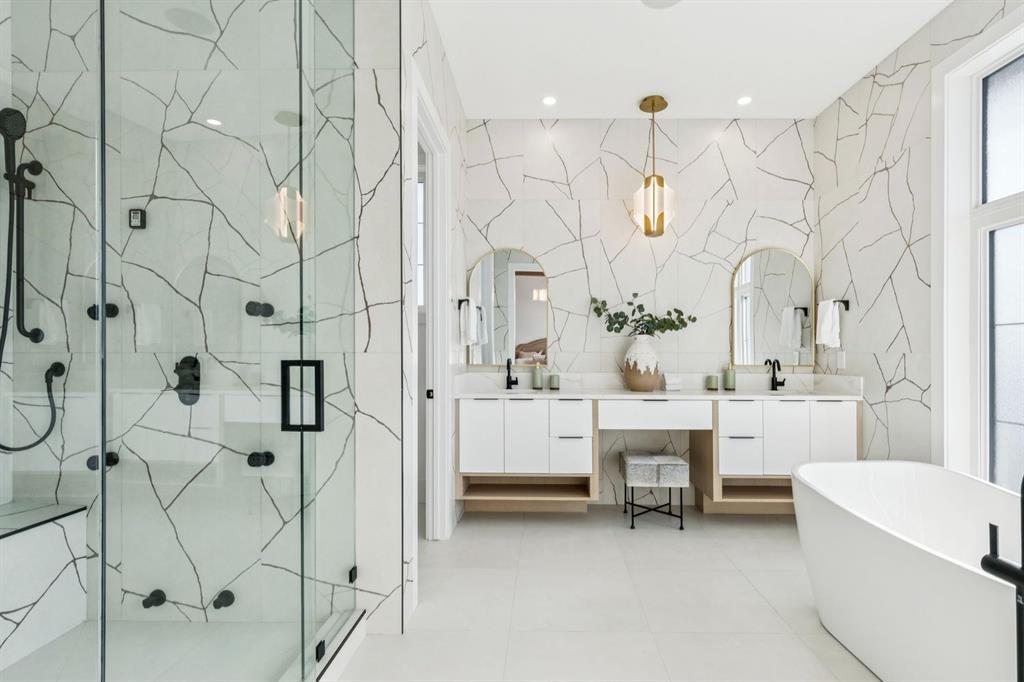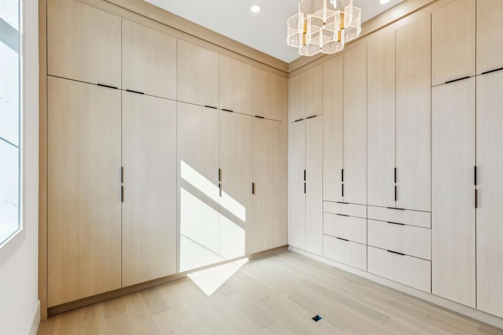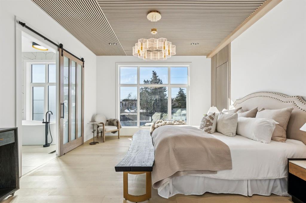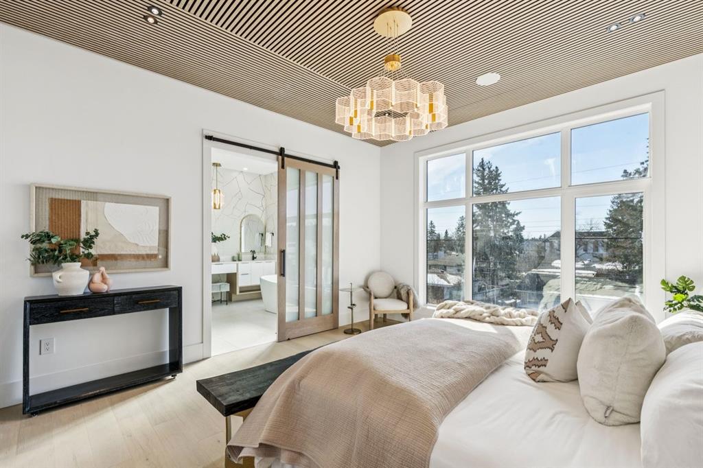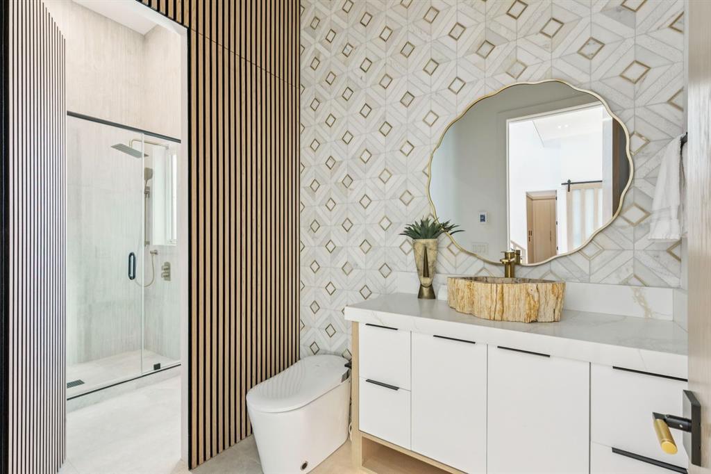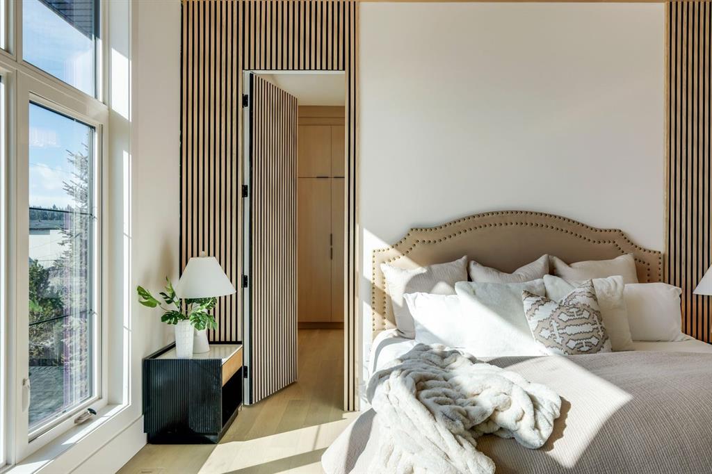 Discover refined living in this exceptional custom build by HeavenView Homes, ideally located in sought after West Hillhurst. Crafted with uncompromising attention to detail, this home sets a new standard for luxury with elevated design, impeccable finishes, and thoughtfully curated spaces throughout. From the moment you enter, a custom solid wood and metal feature railing creates a striking architectural statement, while soaring 12 ft ceilings on the main level and 10 ft ceilings on the upper and basement levels enhance the home’s sense of scale. White oak hardwood floors, dramatic feature walls, more than 200 pot lights, and extensive LED strip lighting elevate the interior, while oversized triple pane windows flood the home with natural light and complement whole house spray foam insulation for superior efficiency. The elegant dining room flows into the living room, separated by a custom LED-lit architectural feature wall, while bespoke millwork frames a sleek linear gas fireplace. Expansive sliding doors open to a premium exposed concrete patio with an outdoor gas fireplace, seamlessly blending indoor and outdoor living while overlooking the sunny South facing backyard. The statement kitchen is equipped with premium JennAir appliances including a gas cooktop, built-in oven, microwave, and coffee system, complemented by quartz counters, an oversized island, and extensive custom cabinetry. A wraparound butler’s pantry provides abundant storage, shelving, and dedicated wine storage. A spacious mudroom with built-ins connects to the triple attached garage, finished with epoxy flooring and a heater, while AC will also be installed to the home for added comfort. Upstairs, natural light fills the open riser staircase and leads to a well appointed laundry room, coffee/beverage station, and four generous bedrooms, each with feature walls and private ensuites. Bathrooms are enhanced with upgraded Japanese toilets, blending advanced technology with refined design. The primary retreat features a custom walk-in dressing room and a luxurious 6pc ensuite with a deep soaker tub and glass encased steam shower with body sprays. The lower level is designed for relaxation and entertaining with radiant boiler in-floor heat, plush carpets, expansive games and rec areas, a fully equipped wet bar, and extensive wine storage. A dedicated home gym with rubber flooring and mirrored walls, a fifth bedroom with its own ensuite, and an additional powder room complete the space. Technology is seamlessly integrated with 20+ pairs of KEF in-ceiling speakers throughout. The South facing backyard will also feature a fully new fence and professional landscaping once weather permits. Ideally located minutes from Westmount Charter School, Helicopter Park, the off-leash dog park, Foothills Medical Centre, and the Bow River Pathway, this remarkable residence seamlessly blends timeless elegance with modern sophistication.