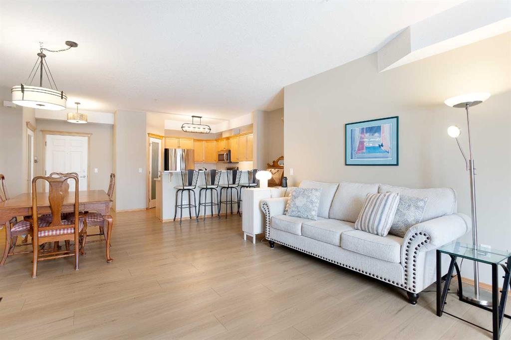 2 BED 2 BATH | UPDATED | AIR CONDITIONING | 55+ Adult living | The unit you have been waiting for! Offering 2 beds & 2 Bathrooms this nearly 1100 sqft unit in the sought after 'Sierras of Evergreen' provides a wonderful opportunity to the right buyer. This unit has been tastefully updated with luxury vinyl plank floors, quartz counter tops in the kitchen and bathrooms providing you an updated modern look while providing ease of cleaning. Primary bedroom is a great size and includes a 4piece ensuite and large walk-in closet with shelves. the 2nd bedroom would be a perfect spot for an office or guest room and is separated from the primary by the living room providing greater privacy in each room. Laundry room features solid wood built-in shelving, prefect for storing all of your cleaning supplies or extra pantry items and features a newer high efficiency washer and dryer! The kitchen provides ample counter and cupboard space, corner pantry, raised eating bar, stainless steel appliances and pristine maple cabinetry. Within this well appointed building you can find a significant amount of amenities including an indoor pool, hot tub, fitness facility, wood working room, multiple games/billiards rooms, rentable party/banquet room, 7 rentable guest suites, craft room, movie theatre room, car wash, multiple libraries along with numerous meeting and sitting areas. This building offers a wonderful community of owners who have pride of ownership and provides many opportunities to connect and converse with your fellow neighbors through numerous organized activities. Enjoy walks outside around the walking paths or take a trip on foot to the nearby shopping center for quick access to shops, restaurants and grocery store. Easy access to Stoney Trail, Macleod Trail, 6 mins to Shawnessy shopping centre, nearby bus stop with access to Shawnessy LRT station. This unit also offers titled parking and a secure storage unit in front of the stall. Electricity, heat and water/sewer included in condo fees! This is a well maintained unit that needs to be seen to be appreciated! Book your viewing today!