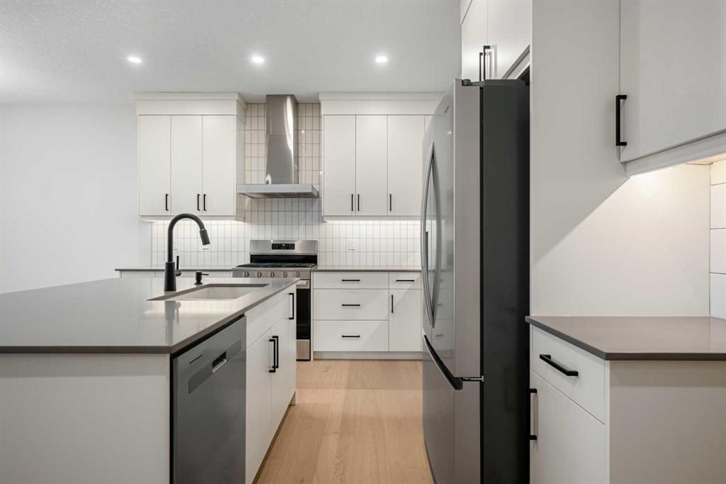 A separate side entrance leads to a lower level built on a 9’ foundation, complete with basement rough-ins—a blank canvas ready for future development. Outdoor living is equally appealing with a rear deck featuring stairs to grade and a gas line, ideal for barbecues, family gatherings, and enjoying Calgary’s summer evenings.