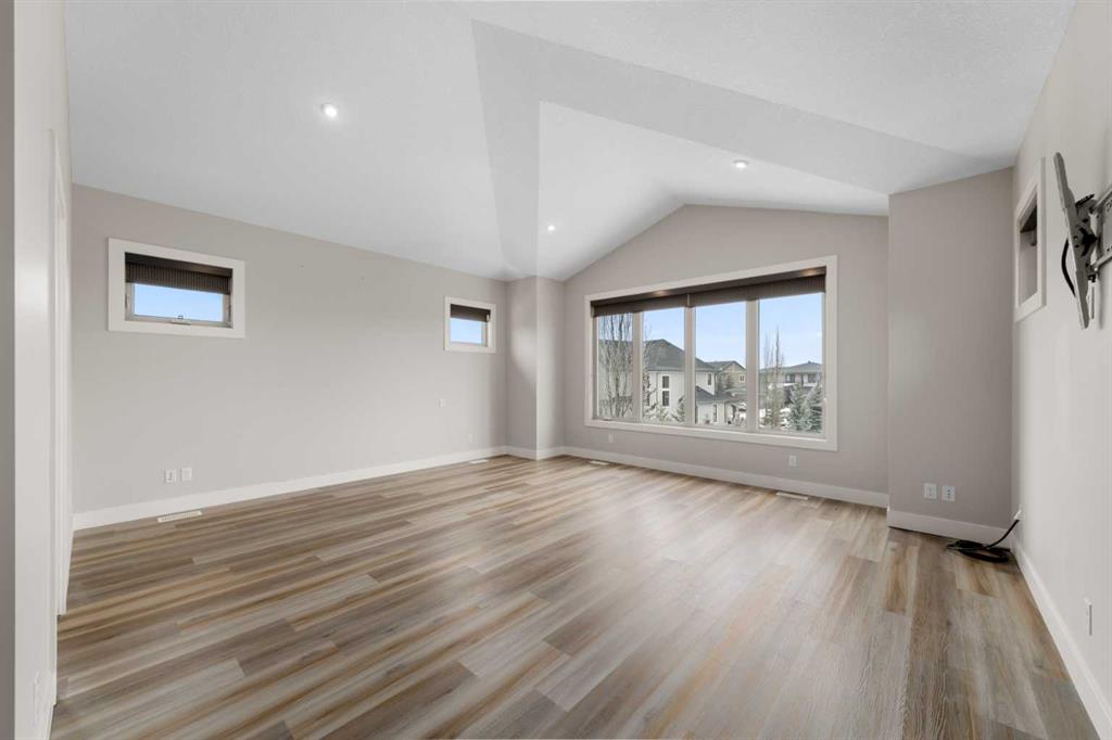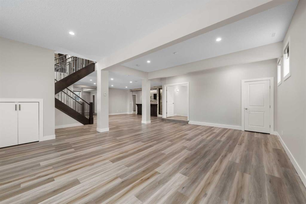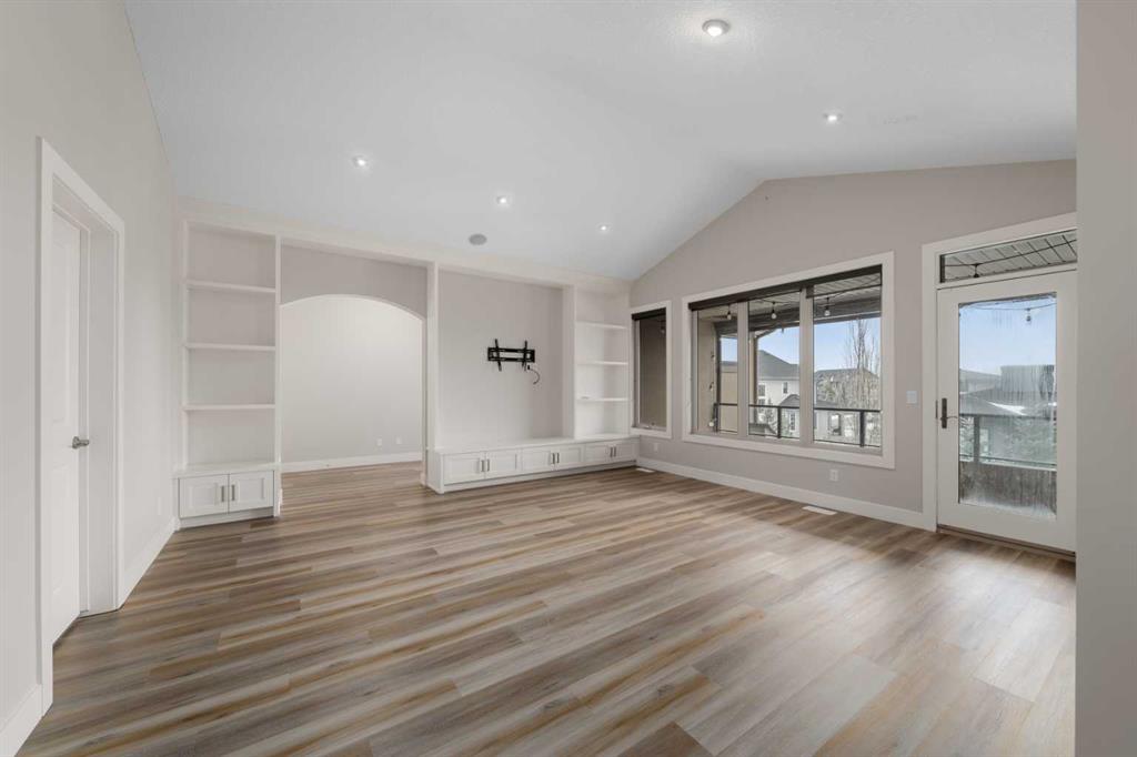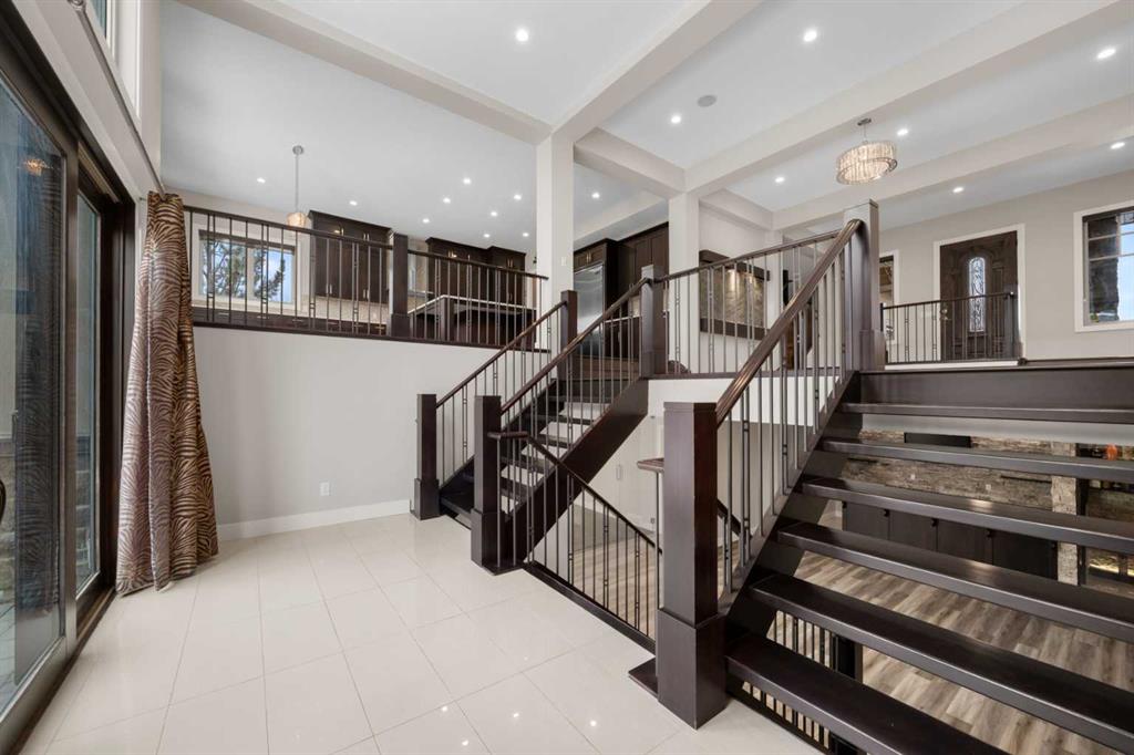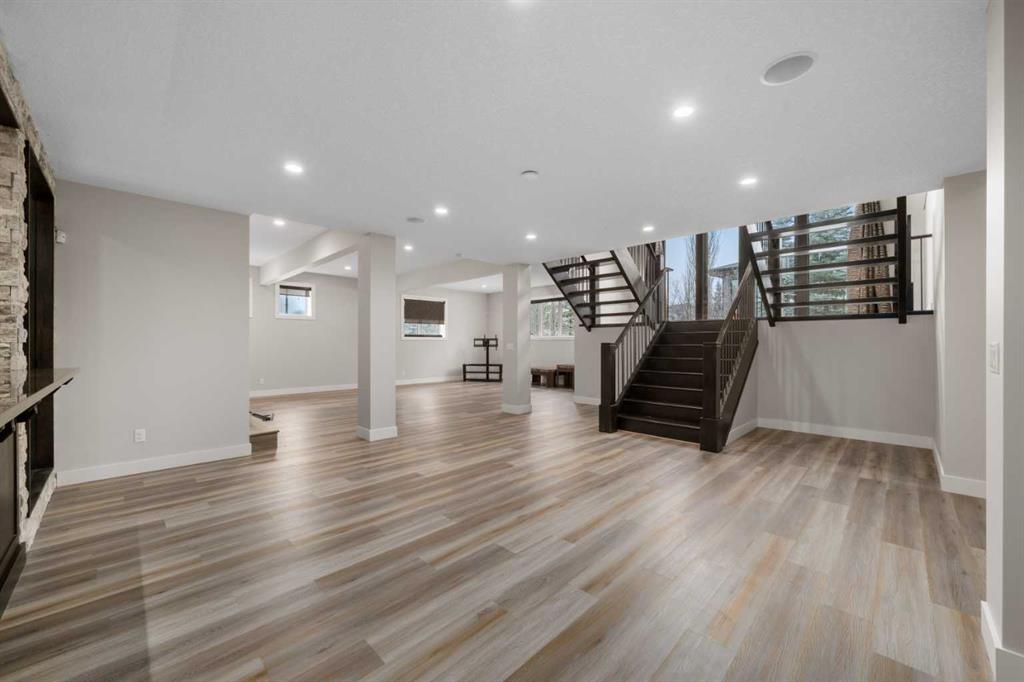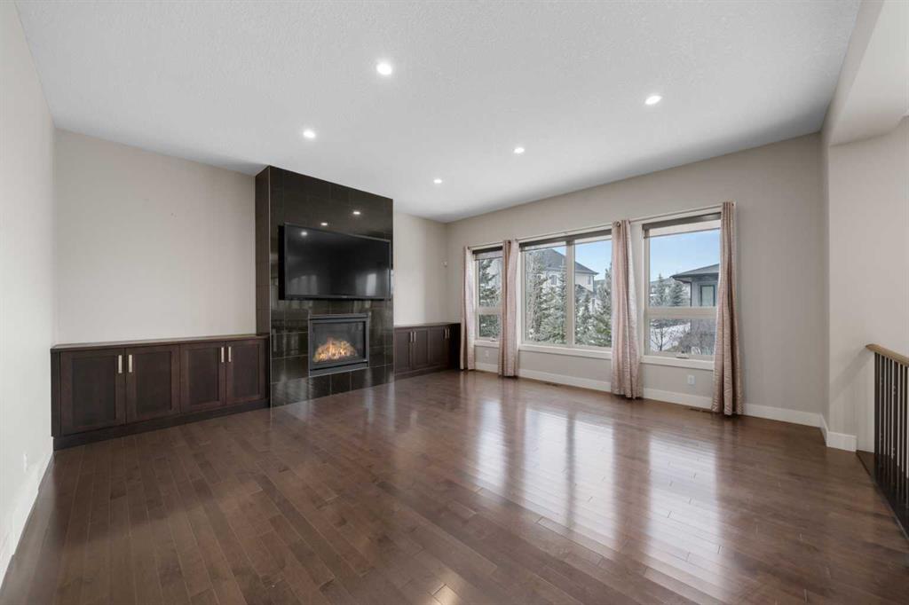 Welcome to this extraordinary, planned home in the tranquil Estate community of Watermark at Bearspaw. This wonderful home sits on a .30-acre lot with Mountain views of the back. The grand residence offers over 6,800 sq. ft. of living space with 5 bedrooms, 4.5 bathrooms, extra-large great room and a dining room, huge den with its own storage room, glass wall gym, fully developed Theatre room, and a spacious storage room.