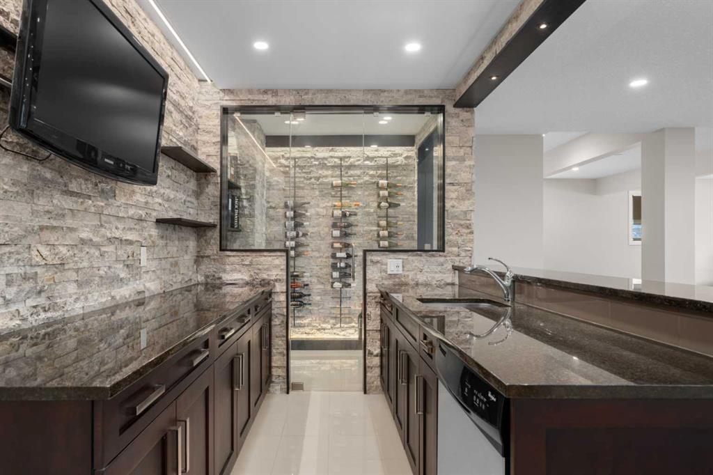 The basement includes a full surround sound system projector home theatre system, which is staying with the house so is ready to use right away. The wine room and wet bar along with the special lighting make this part of the house an amazing place to host and make memories. The basement also includes a large bedroom and full bathroom for any guests along with a full-size gym with a glass wall, door, and a wall sized mirror.