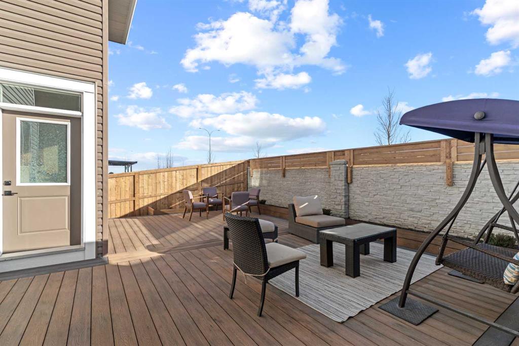 The exterior living experience is equally impressive, featuring a fully finished and landscaped south-facing backyard complete with a premium composite deck and beautifully curated flower beds, creating an ideal setting for outdoor entertaining and relaxation. Additional highlights include a double attached garage and an extended exterior parking pad at the front, providing a total of three dedicated parking spaces for enhanced convenience.
