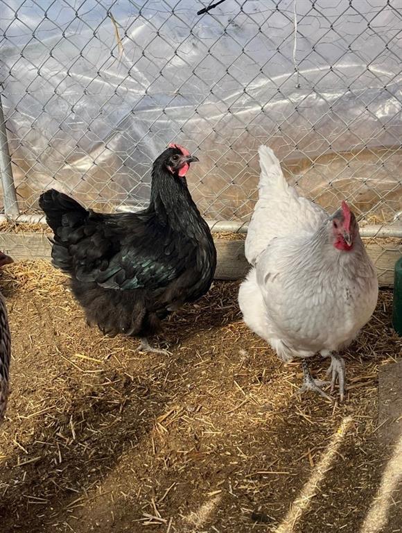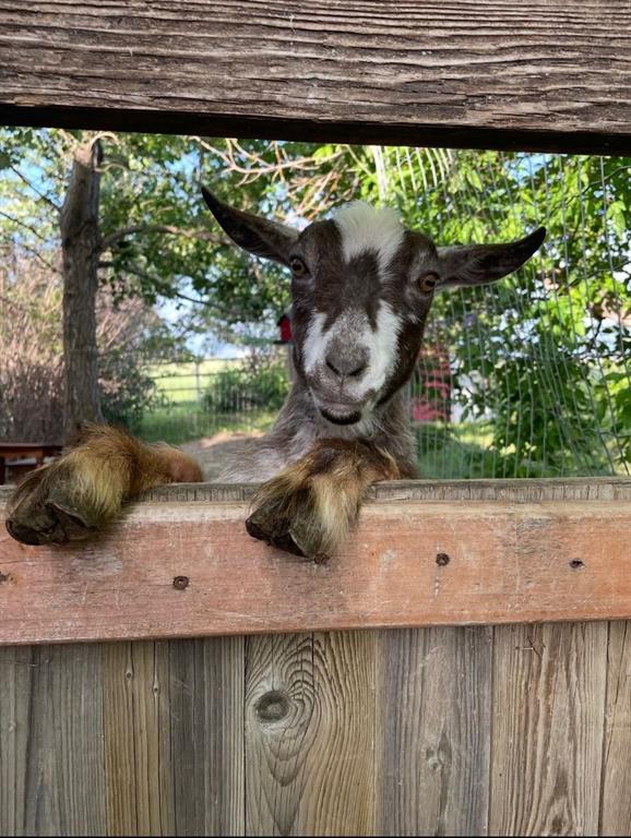 The land features post-and-rail perimeter fencing, two fully fenced pastures, a horse shelter, and a 3-stall barn with electricity, complete with a tack and feed storage room. Additional functional outbuildings include a tack/utility shed, insulated chicken coop with run, and a goat shelter with insulated pen, offering versatility for a variety of animals and uses.
