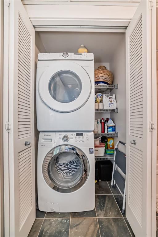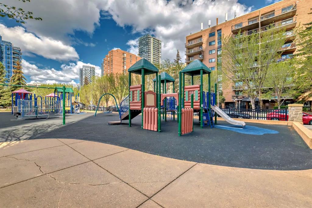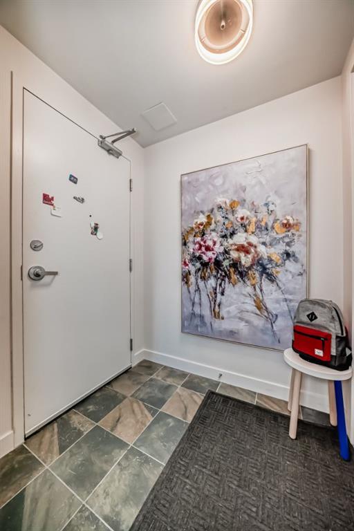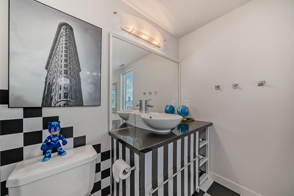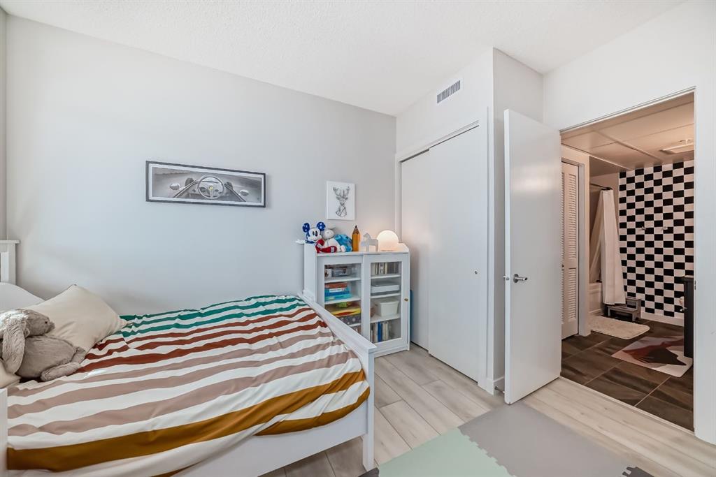 This revamped Union Square condo captures the essence of modern urban sophistication. Lofty ceilings and expansive windows flood the space with natural light while framing breathtaking views of Downtown Calgary. The kitchen is a contemporary masterpiece, featuring an industrial-chic design with a black, white, and stainless-steel color palette. The upgraded light grey vinyl plank floors and statement lighting, including funky track lights and a bold chandelier, add a trendy edge to the space. The kitchen boasts a sleek stainless-steel-look countertop, offering a stylish modern update over its original quartz finish. A generous island invites socializing and casual dining, seamlessly flowing into the open-concept living area. Here, a built-in nook provides a versatile space for a home office or extra storage. Step out onto the private balcony for sweeping city views, from the iconic Calgary Tower to the bustling Stampede grounds. The primary suite is a retreat, complete with a walk-in closet and a spa-like ensuite featuring a vessel sink and glass-enclosed shower. The second bedroom is equally spacious, with jack-and-jill access to the main bathroom, ensuring privacy and convenience for guests or roommates. In-suite laundry adds to the effortless lifestyle this home provides. Located in the heart of the Beltline, this condo offers secured underground parking and unbeatable walkability. With a walkscore of 93, you’re just steps away from renowned bars, restaurants like Ten Foot Henry, Midtown, and Proof, as well as parks, grocery stores, fitness centers, and the C-train. The river pathways and Stampede grounds are also within easy reach, making this an ideal home for modern city dwellers. Schedule your viewing today to experience contemporary Beltline living at its finest!