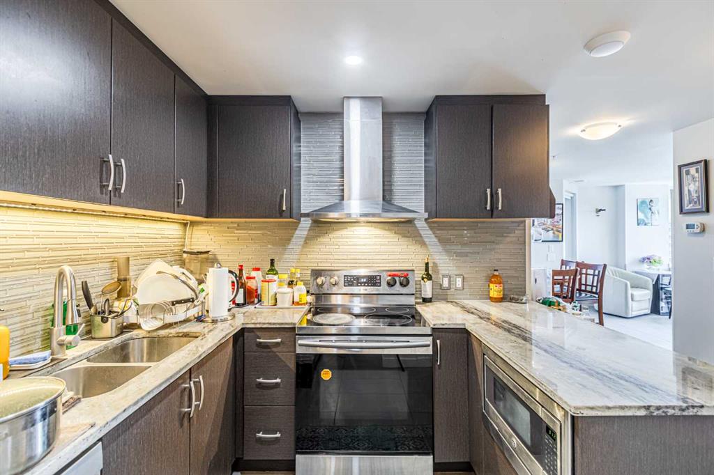 Location doesn't get any better than this! South-east facing, very bright floor to ceiling windows, overlooking Downtown Calgary Tower and Tennis court. Steps to downtown, 17th Ave, 4th Street entertainment districts, and the Stampede Grounds. Good school district, Western Canada HS. Many daycares in the area. Walk to work. One block to the Hospital. This 2 bed, 2 bath has a private balcony with BBQ hookup. Enjoy luxury living with a rec room, resident lounge, guest suite, and electric car charging. One U/G parking spot included! With stainless steel appliances, quartz countertops, and sleek tile flooring. Just a short stroll away from downtown office districts, convenient access to the LRT, Talisman Centre, and river pathways. Building amenities include a rec room, bike storage, resident lounge, guest suite, and 16 visitor parking stalls with electric car charging. This is more than just a condo; it's a lifestyle. Concierge service during office hours. Well managed building, pets subject to board approval. Schedule your showing today.
