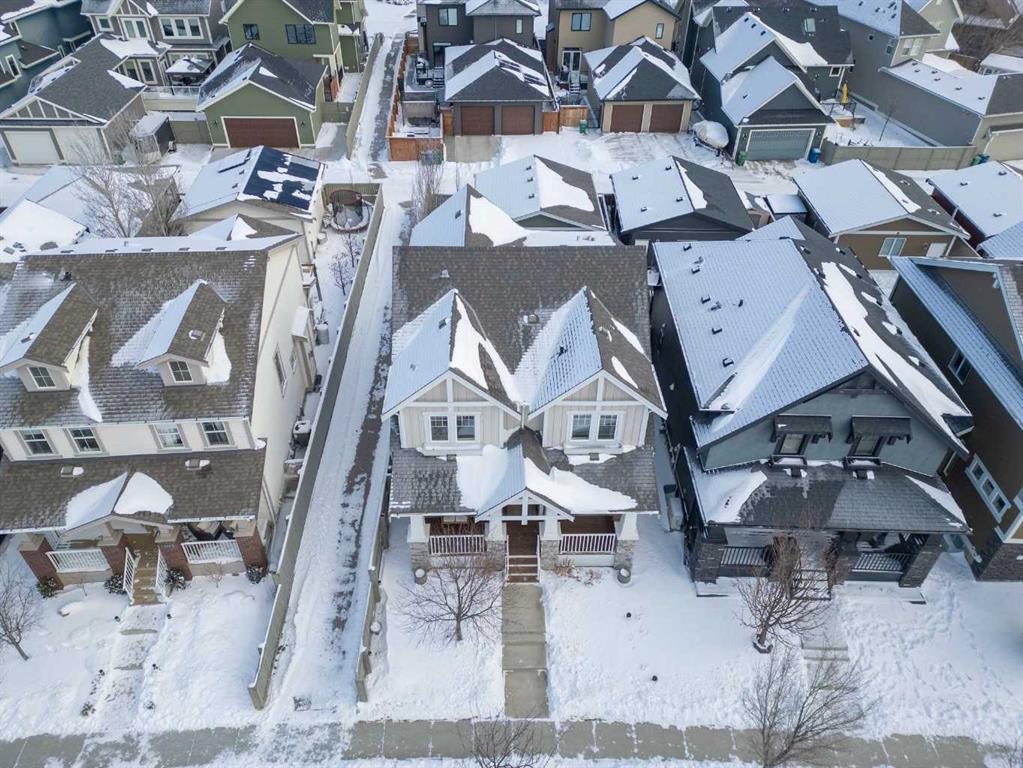 Welcome to a home that feels special from the moment you arrive. Set on a quiet street in Coopers Crossing, this beautifully finished two storey offers over 3300 sq ft of thoughtfully designed living space and the kind of curb appeal that instantly draws you in. Mature trees frame the yard, and the extended WEST FACING COVERED FRONT PORCH invites you to slow down and stay awhile. Inside, HARDWOOD FLOORS and 9’ ceilings create a warm, open feel. A versatile front den or formal dining room flows into a private home office through etched glass FRENCH DOORS, perfect for working from home in comfort. Updated lighting and a refreshed powder room add a modern touch. At the heart of the home, the GRAND KITCHEN features dark cabinetry, GRANITE COUNTERS, STAINLESS APPLIANCES including a new dishwasher and Samsung Bespoke fridge, a massive OVERSIZED ISLAND, and a coveted CORNER PANTRY. The sunny breakfast nook opens to the backyard, while the great room with GAS FIREPLACE offers a cozy place to gather. Upstairs, a central BONUS ROOM creates separation and privacy. The primary suite is bright and expansive with VAULTED CEILINGS, two WALK-IN CLOSETS one with an organizer, and a 5 piece ensuite complete with DUAL VANITIES, SOAKER TUB, and OVERSIZED WALK-IN SHOWER. Two additional spacious bedrooms, an updated 4 piece bath, and UPPER FLOOR LAUNDRY complete the level. The FULLY FINISHED BASEMENT adds incredible flexibility with 9’ ceilings, LUXURY VINYL PLANK flooring, a large rec room with ELECTRIC FIREPLACE, a fully-equipped Theatre Room WIRED FOR SOUND, a fourth bedroom, and a 3 piece bath. Outside, the deck is wired for a future hot tub, surrounded by mature trees, providing complete privacy in the summer, and newly added perennials in the FULLY FENCED yard. The OVERSIZED DOUBLE DETACHED GARAGE is insulated and drywalled, and CENTRAL AC keeps you cool all summer. Located right on Cooper's extensive pathway system connecting to ponds, parks, schools, and shopping, this move-in ready home offers space, comfort, and a location that truly stands out. Come experience it in person. Book your showing today!
