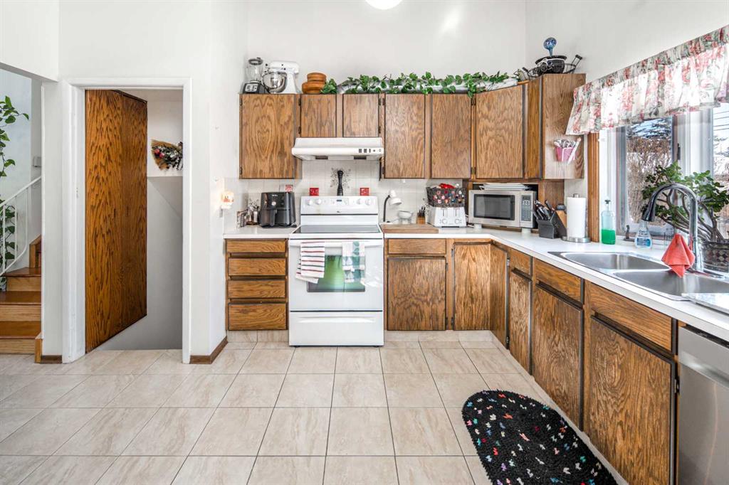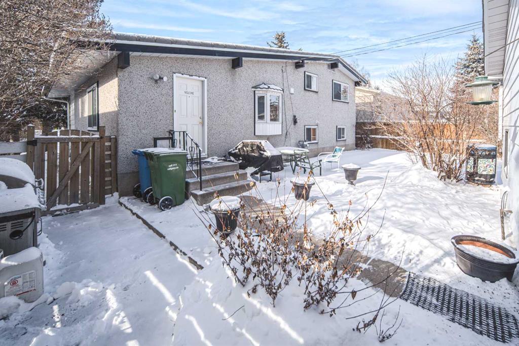 Open house March 14th (Saturday) 1:00-4:00pm. Immaculate fully finished 4-level split located directly across from a park and school in a highly convenient and family-friendly neighborhood. This well-maintained home offers 3+1 bedrooms and 2.5 bathrooms, making it ideal for families or as an investment property. The bright and open main level features gleaming hardwood floors, a spacious living room with soaring vaulted ceilings, and a formal dining area perfect for entertaining. The large kitchen includes newer tile flooring and updated appliances, providing both functionality and ample workspace. The upper level offers three generously sized bedrooms, including a primary bedroom with a private 2-piece ensuite, along with a renovated 4-piece main bathroom. The third level features a spacious family room filled with natural light from large windows, complete with a cozy wood-burning fireplace and an additional 4-piece bathroom. The fully finished lower level includes a fourth bedroom, cold/storage room, and laundry area, providing extra living space and storage. Oversized double garage fit big truck. Recent updates cost around $60K include: Dish Washer (2023), Garage door spring and rail (2024), newer roof on the oversized double garage (2014), interior paint (2014), entrance doors (2014), side fence and gates (2014), and a durable metal roof on the main house. Located within walking distance to the University of Calgary, transit, C-Train, and Market Mall, and just minutes from two major hospitals, Bowmont Park, and downtown. A fantastic opportunity in a prime location.