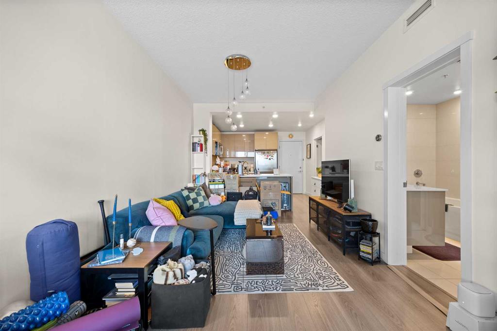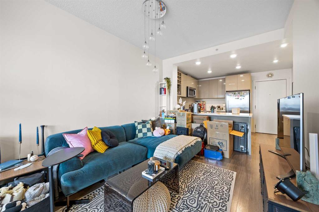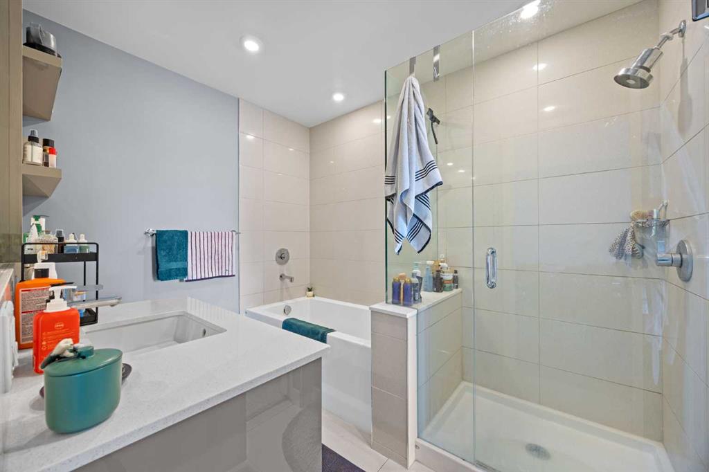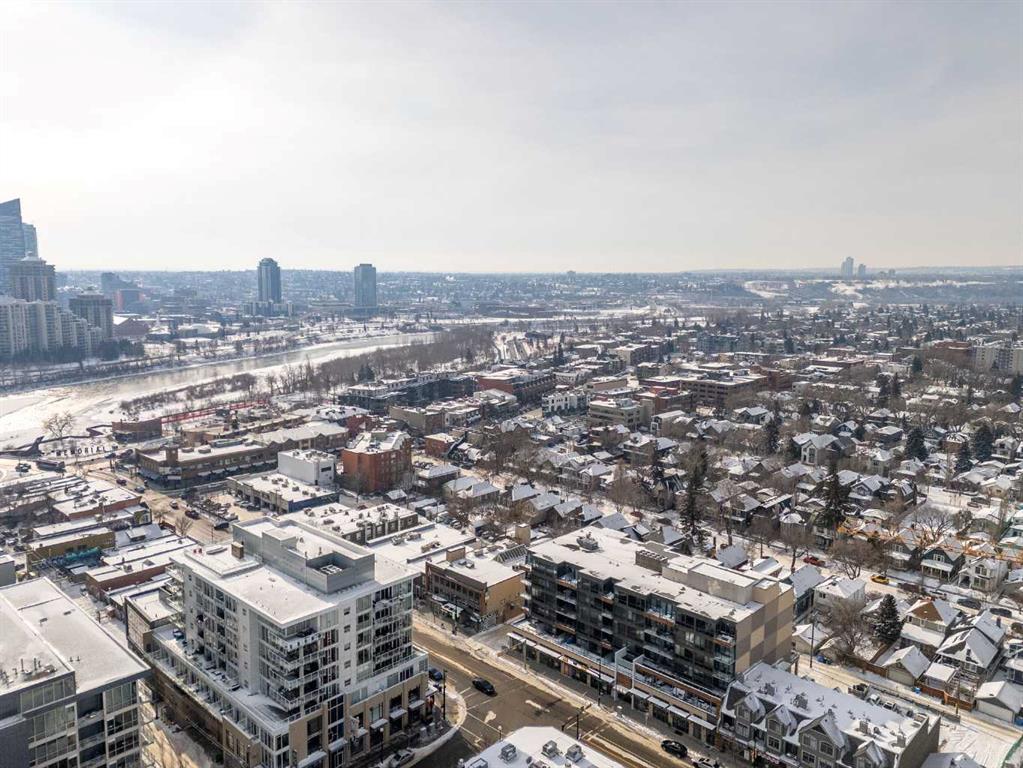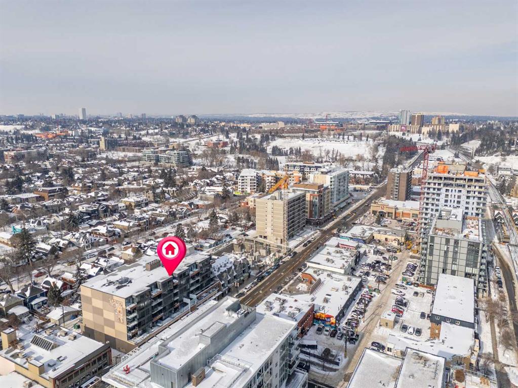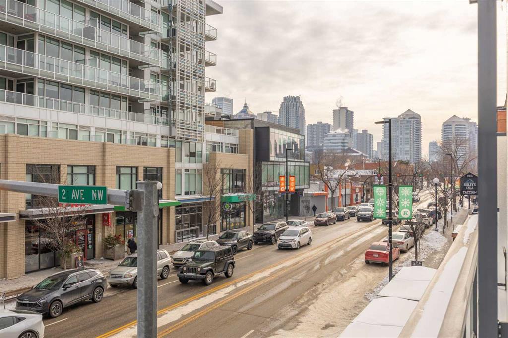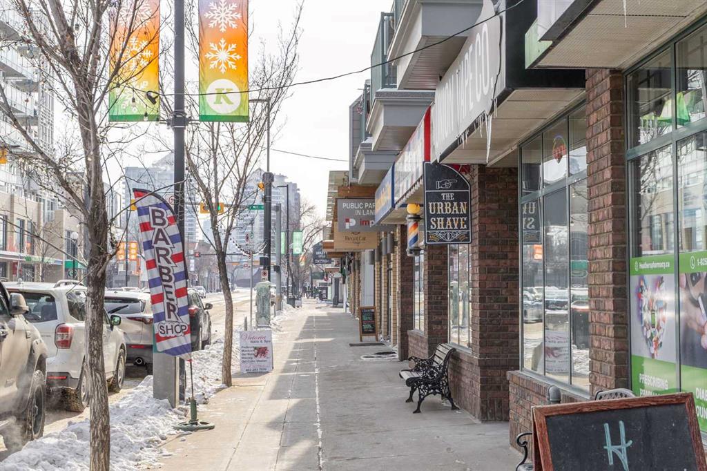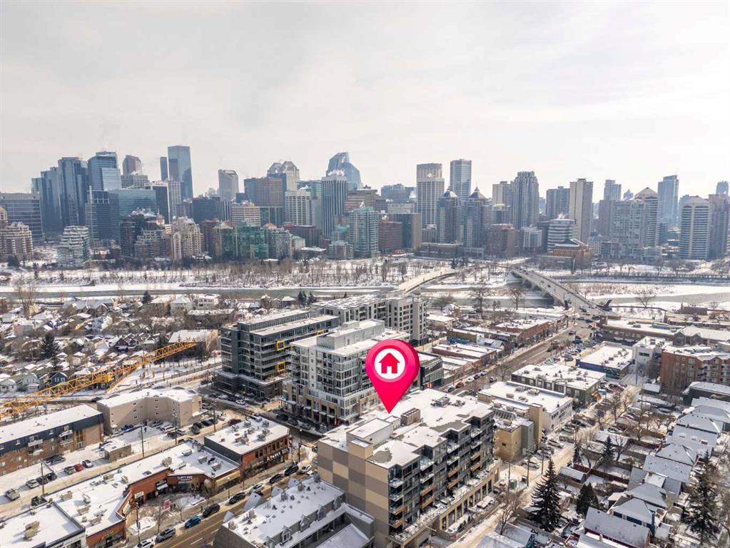 Welcome to urban living at its finest in The Kensington, ideally located in the vibrant community of Hillhurst. This beautifully appointed 1-bedroom, 1-bathroom unit showcases modern finishes and an open-concept layout designed for both comfort and functionality. The stunning U-shaped kitchen features high-gloss cabinetry, excellent counter space, a built-in wine rack, and premium stainless steel Bosch appliances, including a gas stove, perfect for those who love to cook and entertain. The kitchen seamlessly opens to the bright living/dining area, offering flexibility for adding a home office setup or a sunny reading nook. Step outside to your spacious private south facing balcony, complete with a convenient BBQ gas line, ideal for entertaining or relaxing evenings at home. The generous primary bedroom offers a large walk-through closet with thoughtfully designed shelving for maximum organization and direct access to the elegant 4-piece bathroom. Enjoy luxury touches including a deep soaker tub, glass surround stand up shower, large vanity with ample storage, built-in shelving, and a cheater door providing convenient access from the main living space. Additional highlights include a dedicated laundry room near the entrance with side by side washer and dryer with extra storage space and an additional front closet area. Central air conditioning ensures year round comfort and this unit also comes with one TITLED underground parking stall and an assigned storage locker, an added bonus that is priceless with condo living. Additionally the building also offers a residents car wash and bike storage! Residents will love the unbeatable location with retail amenities right on the main floor, including Orange Theory Fitness and a café, plus just a 5-minute walk to Sunnyside LRT station. Enjoy quick access to the Bow River pathways, downtown core, and the countless shops and restaurants that make Kensington one of Calgary’s most sought-after neighbourhoods. This is a rare opportunity to own a sophisticated home that perfectly blends luxury, convenience, and that unbeatable inner city lifestyle.