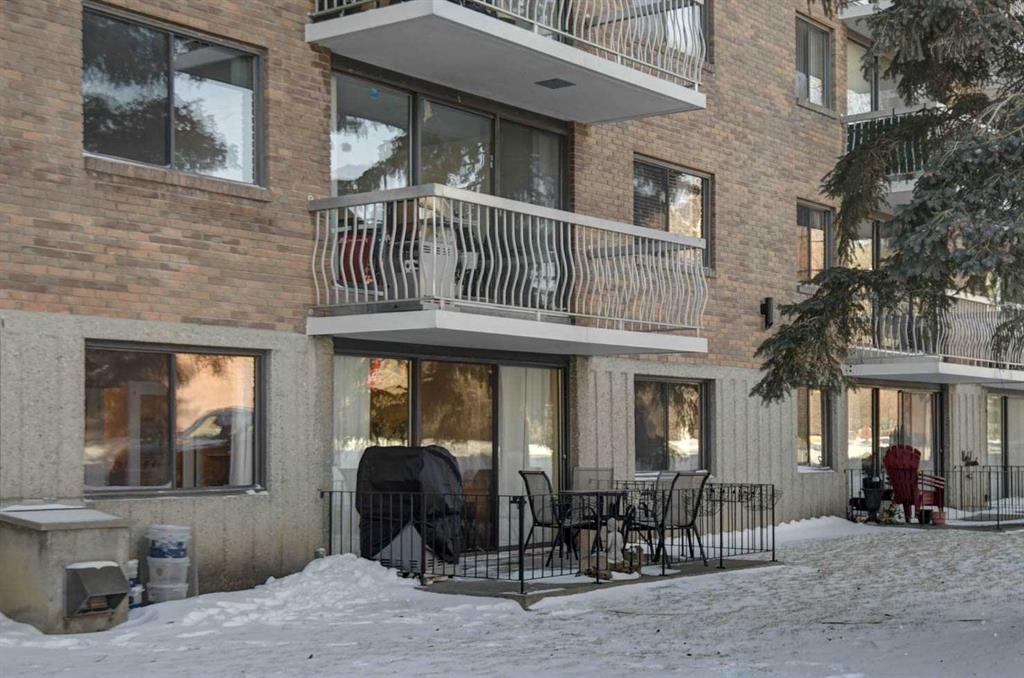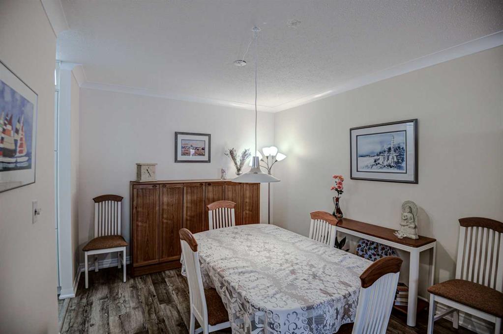 ? Quiet, 40+ age restricted living can be yours in Chinook Manor, a well-managed and maintained five storey concrete building, with elevator, that is only a couple of blocks from Chinook Center. The spacious two-bedroom unit offers 993 square feet of living space and literally needs no work. Just move in and enjoy. This home is freshly painted throughout. along with all brand-new vinyl plank flooring . Large open living room dining room combination with crown moulding overlooking your exclusive use patio. Second bedroom can be used as an office. The Murphy bed is included.The full bath has a newer vanity. In-unit laundry and storage room.There is also a separate assigned storage room locker . Amenities Include a social room, billiard room, fitness room, laundry room and workshop. The available underground parking is an option, subject to availability, over and above the building’s included surface parking and abundant on-street parking. There is a strict no-pet policy here and respectable condo fees of $604 per month. Enjoy the quiet lifestyle.Close to transportation and all types of shopping and restaurants.