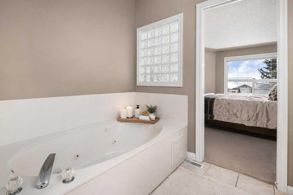 The main level is anchored by a spacious primary suite with vaulted ceilings and a 4-piece ensuite featuring a tub and separate shower, plus main-floor laundry & a convenient powder room to keep life simple.