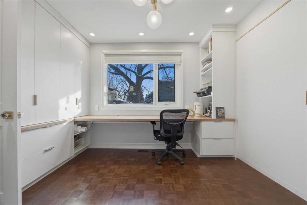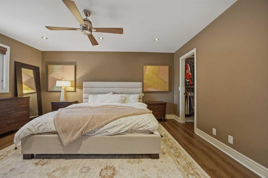 Kelvin Grove - 1136 Kildonan Place SW: Situated on a quiet cul-de-sac in the established community of Kelvin Grove, this fully developed two-storey home offers a traditional layout with over 2,900 sq ft of total living space, 3 + 1 bedrooms, 3.5 bathrooms, and a heated, oversized, attached double garage. The main floor has tons of natural light and features hardwood/parquet flooring throughout. The bright west-facing living room is separated from the family room by a bevelled glass partition wall. The family room features a wood-burning brick fireplace, built-in shelving, and French doors leading to the generous backyard, creating a seamless indoor-outdoor flow. The updated kitchen is thoughtfully designed with granite countertops, abundant cabinetry, a gas range, a custom hood cover, a built-in oven, and a refrigerator. A bay window overlooks the backyard, while the adjoining breakfast nook provides a second set of French doors for added access to the outdoor space. The main floor den includes a built-in desk with storage, and connects conveniently to the mudroom, complete with a custom bench, hooks, and a closet. A 2-piece powder room, spacious front entry, and separate side entry off the kitchen complete this level. Upstairs, you will find new luxury vinyl plank flooring throughout. The generous primary suite features a custom walk-in closet with ample hanging space and drawers, along with a 5-piece ensuite with dual sinks, a glass-and-tile shower with a bench, and a jetted tub. Two additional bedrooms, each with custom closet systems, and a 4-piece main bathroom with linen storage complete the upper level. The lower level is fully developed and includes a large recreation room with a gas fireplace and flexible space for a games area, a fourth bedroom with a 3-piece ensuite, a laundry room with sink and folding counter, and a spacious storage closet. Situated on a quiet cul-de-sac, this home rests on an oversized 7,492 sq ft lot without a back lane. The generous backyard is private and fully fenced, featuring mature landscaping, a spacious patio, and a storage shed, offering the perfect setting for entertaining or family enjoyment. Kelvin Grove is a sought-after neighbourhood known for its mature tree-lined streets and excellent amenities. Enjoy close proximity to green spaces, Chinook Centre, Rockyview Hospital, Heritage Park, Chinook Park School, Henry Wisewood High School, and convenient access to Glenmore Trail, Elbow Drive, Crowchild Trail, and Stoney Trail. This is a wonderful opportunity to own a home that offers room to live, grow, and entertain in one of Calgary’s most desirable communities. For more information, please call us today!