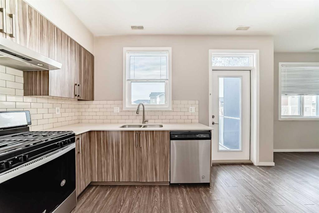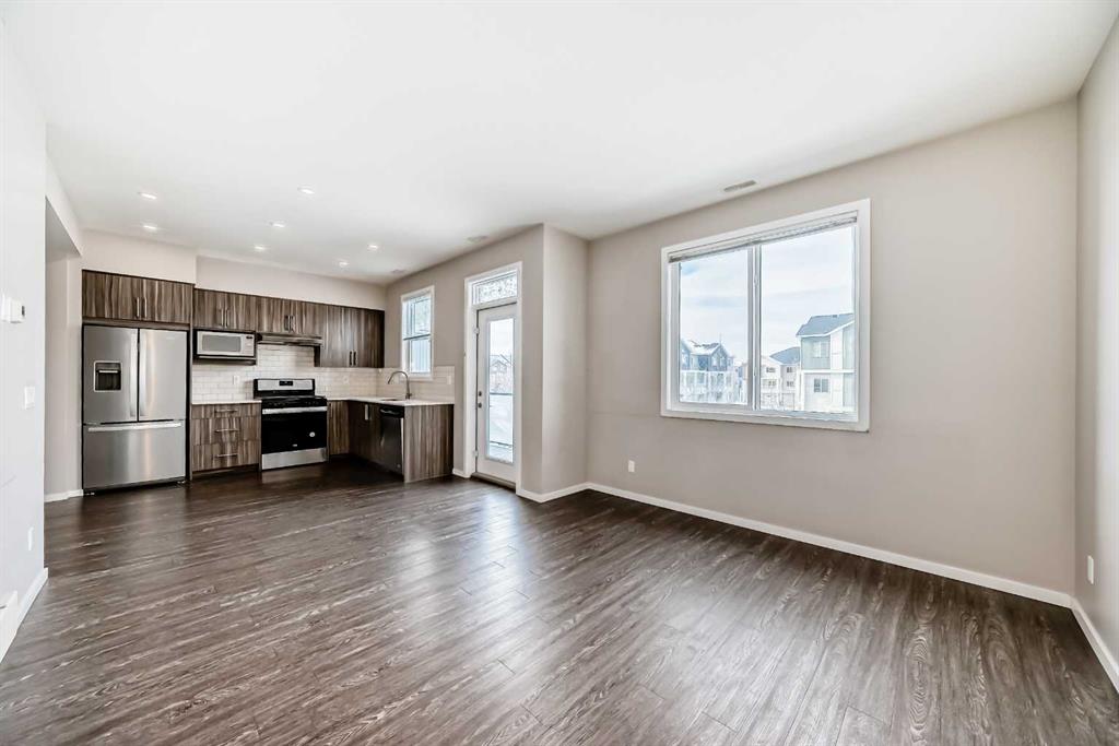 This bright and spacious two-storey townhome offers a functional open-concept layout with dual primary bedrooms, each complete with its own private ensuite. The main level features a modern kitchen with quartz countertops and a good sized dining and living room area with direct access to your west-facing balcony. A convenient powder room completes this level. Upstairs, you’ll find two spacious primary bedrooms, each with a 4-piece ensuite, along with upper-level laundry for added convenience. The home also offers a single attached garage with a private entrance to the unit and a side door leading outside. Plenty of visitor parking is available for guests. Built by Jayman, this well-maintained complex features a central park with a playground, BBQ area, and pergola for residents to enjoy. It is a pet-friendly complex with condo fees of $373.67 per month, which include Redstone’s annual HOA fee. Ideally located steps from the pathway system around the wetlands pond, shopping, and transit, with excellent access to Stoney Trail, Metis Trail, and Deerfoot Trail for an easy commute.