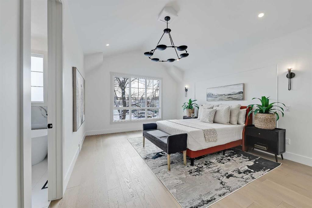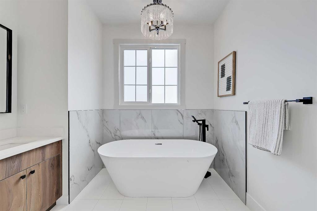 Upstairs, the homes bright and airy pallet carries through. At the top of the stairs, a cozy loft space can be turned into a workspace or additional living area. This floor includes three well sized bedrooms all with plenty of natural light, as well as a beautifully finished main bathroom. The primary suite is well-equipped and full of charm, with a walk-in closet and a spa inspired ensuite featuring a freestanding tub, tiled shower, and elegant selections throughout. You will also find a spacious laundry room right where it should be.