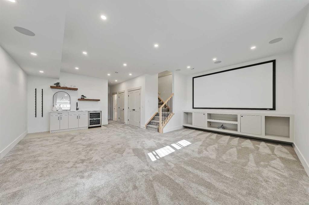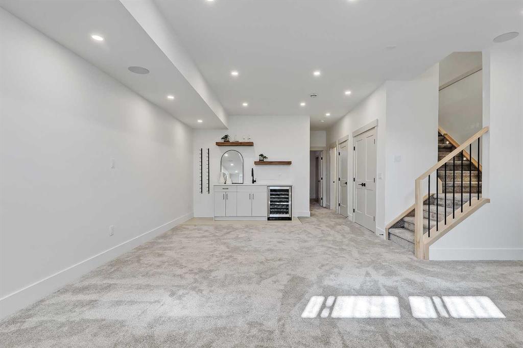 The fully finished basement adds so much to the home. A large family room is designed as an entertainment hub with a built-in media wall, creating the perfect setting for movie or game nights. A stylish wet bar with wine fridge and makes hosting easy. This level also includes two more bedrooms and a full bathroom, making it ideal for guests or growing families. Outside, the property includes a detached double garage and outdoor space ready for summer gatherings.