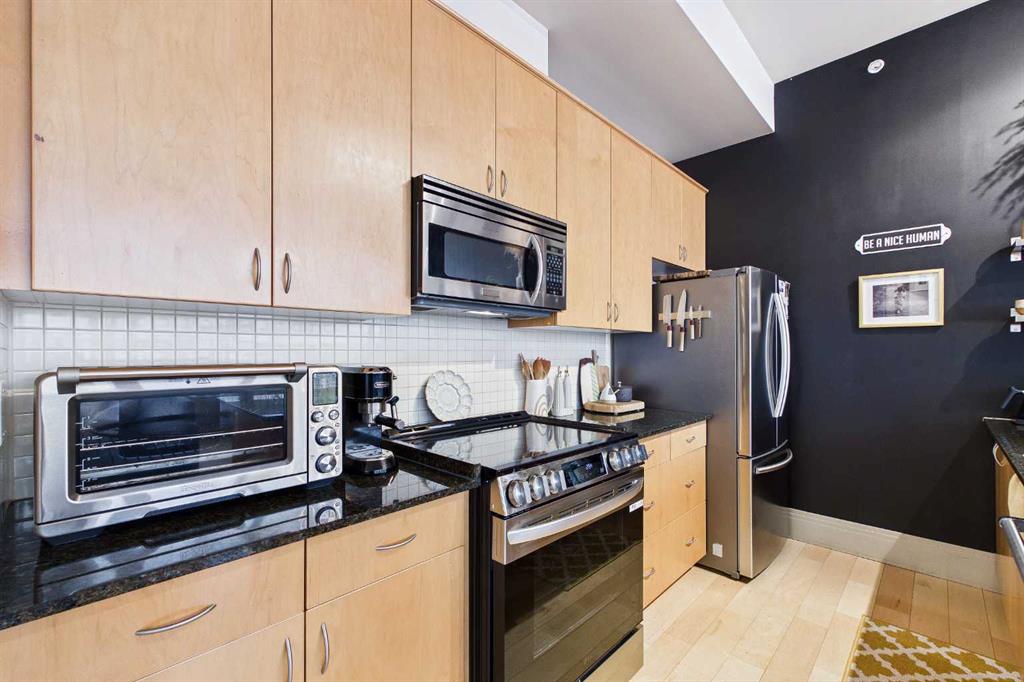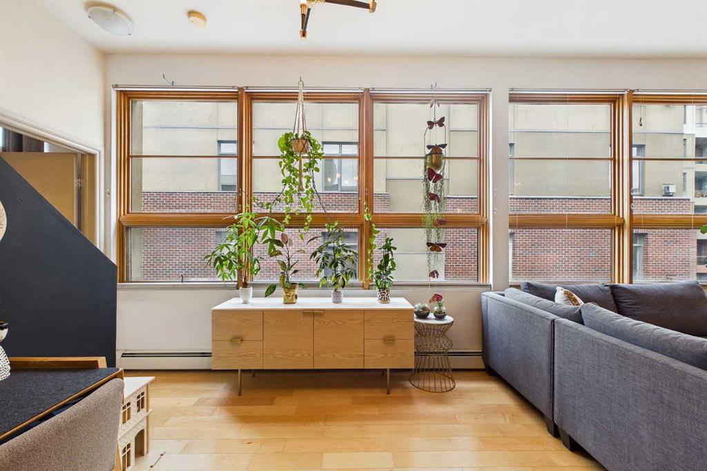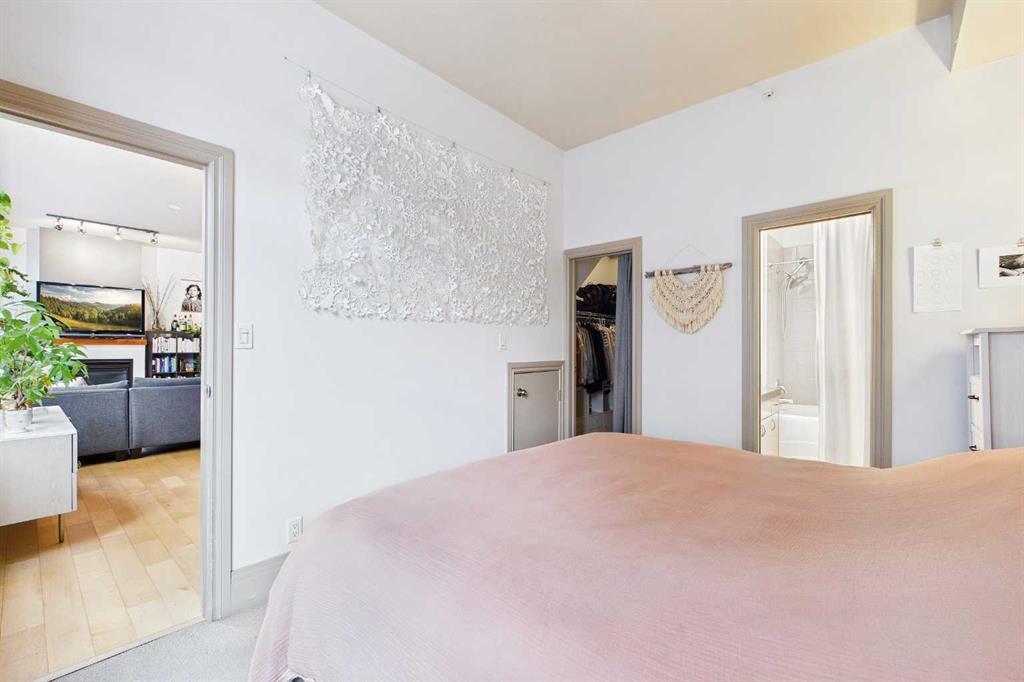 Welcome to “THE PIAZZA“Experience elevated inner-city living in the heart of Bridgeland — one of Calgary’s most exclusive and sought-after communities. This stunning 2-bedroom condo blends modern design with refined comfort, featuring soaring high ceilings and a dramatic wall of windows that floods the space with natural light while showcasing vibrant urban views. The open-concept layout creates a seamless flow between living, dining, and kitchen spaces — perfect for both stylish entertaining and everyday living. At the heart of the living area, a sleek fireplace adds warmth and architectural interest, creating an inviting focal point year-round. The contemporary kitchen offers clean lines, quartz counters, premium finishes, and thoughtful storage designed for effortless functionality. Convenience matters! In-suite laundry, an additional 3 piece bathroom, 2 generously sized bedrooms, with the primary retreat offering a peaceful escape including your own personal ensuite, huge walk in closet, and a secret little door for additional storage. Every detail reflects modern sophistication and intentional design. And the SHOW STOPPER !!! Your own private upper rooftop patio — a rare and exclusive feature. Whether you’re hosting summer gatherings, enjoying morning coffee, or unwinding under the evening skyline, this personal outdoor oasis takes condo living to another level. Steps from Bridgeland’s trendy cafes, restaurants, parks, and river pathways — and just minutes to downtown — this residence offers luxury, lifestyle, AIR CONDITIONING, UNDERGROUND SECURE PARKING STALL and location in one exceptional package. Connection is key and this ~ Sleek ~ Stylish ~ Sophisticated ~ design lends to this throughout. Private & Elevated. Welcome to Bridgeland living at its finest!