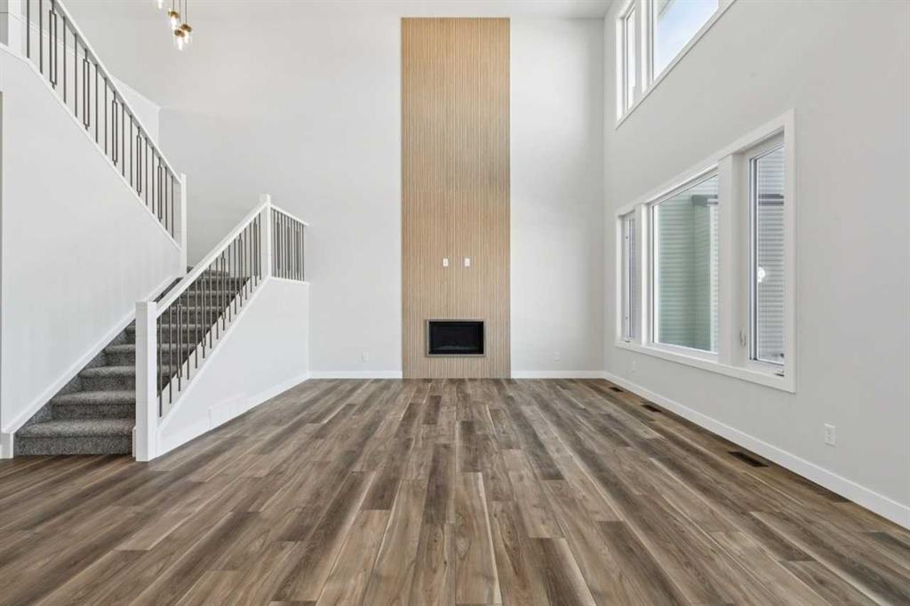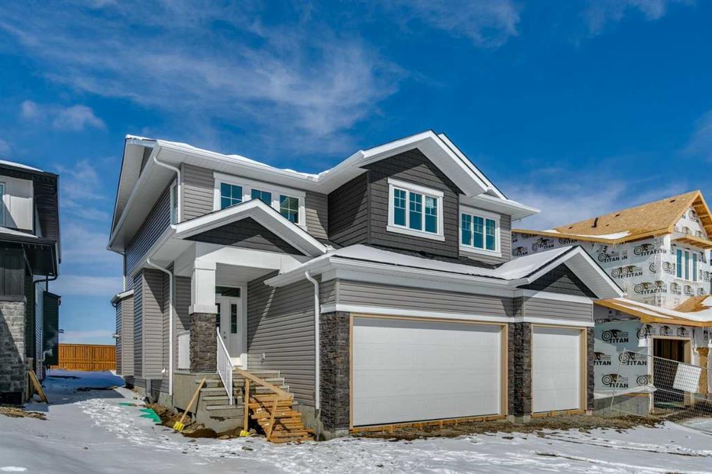 Located at 420 Bridgeport Glen in the Bridgeport community, this Crestview model by NuVista Homes offers 2,323 sq ft of thoughtfully designed living space. Featuring 4 bedrooms and 3 bathrooms, this home showcases a Craftsman elevation and 9’ foundation and main floor ceiling heights. The open-concept main level includes luxury vinyl plank flooring and a natural gas fireplace with full tile surround to the ceiling. The kitchen is well appointed with quartz countertops, taller upper cabinets, and an upgraded Samsung gourmet appliance package. A side entrance provides excellent potential for future basement development. Upstairs, the primary bedroom includes a five-piece ensuite and a large walk-in closet with convenient laundry access. A triple car garage adds exceptional storage and everyday functionality. Designed for comfort and flexibility, this home delivers space and quality in a growing Bridgeport community.