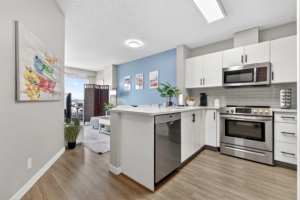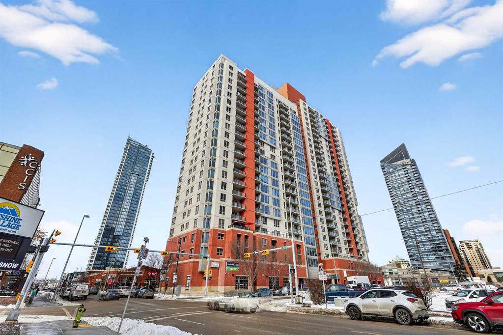 Take in breathtaking mountain and Bow River views from the 24th floor of the highly desirable Vantage Pointe. This beautifully updated two bedroom, two bathroom condo offers the ideal blend of comfort, style, and unbeatable inner city convenience. Perfectly positioned just steps from Calgary Co-op and within easy walking distance to downtown and the vibrant energy of Uptown 17th Avenue, you will love the incredibly walkable lifestyle. Restaurants, cafés, shopping, and everyday amenities are all right at your doorstep. Inside, the modern kitchen showcases stainless steel appliances and quartz countertops, seamlessly connecting to the bright, open concept living area. Expansive windows flood the space with natural light while perfectly framing the stunning mountain and river views. Additional features include in suite laundry, air conditioning, and a private balcony with a gas BBQ hookup that is ideal for relaxing or entertaining. This pet friendly building offers a fitness centre, secure entry, visitor parking, and an impressive lobby. A titled underground parking stall is included, and the low condo fees cover heat, electricity, water, sewer, and parking, ensuring easy, worry free ownership. An exceptional opportunity for a first time buyer, a professional working downtown, or an investor seeking a prime rental property in a sought after location. Enjoy elevated urban living with spectacular views every day.