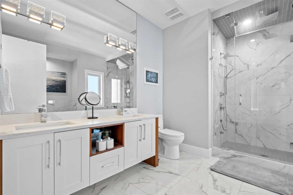 Welcome to 420 14 Avenue NE, an impeccably designed detached infill located on a quiet, tree-lined street in the heart of Renfrew, one of Calgary’s most sought-after inner-city communities. Boasting 3,100 sqft of luxuriously finished living space, this beautifully appointed 4 bedroom, 3.5 bathroom home combines elegant finishes with functional family-friendly design. The main floor features soaring 10’ ceilings, engineered hardwood flooring, custom lighting, and an open-concept layout ideal for entertaining. The chef-inspired kitchen is the centerpiece, complete with quartz countertops, a large island with eating bar, stainless steel appliances, walk-in pantry, and built-in buffet. A spacious living room showcases a floor-to-ceiling tile fireplace flanked by custom built-ins, and a formal dining area and tech center make daily life seamless. As you head upstairs you’ll immediately notice the high vaulted ceilings, 8ft doors, and abundance of natural light. The primary bedroom feels less like a bedroom and more like a retreat. It is a true sanctuary, easily accommodating a king-sized bed and nightstands, plus a separate sitting area, recessed lighted ceiling, large walk-in closet with built-ins, and a spa-style 5-piece ensuite with dual sinks, jetted tub, and oversized 10mm glass shower (roughed-in for steam). Two additional bedrooms, an upper laundry room, plus an additional full bath round out the upper level with thoughtful efficiency. The fully developed basement offers 9’ ceilings, a sprawling media/rec room with custom home theatre set up, wet bar, fourth bedroom, and a stylish 3-piece bathroom. The separate side entrance and wet bar layout create a fantastic opportunity for a future legal suite (subject to City approvals). Additional features include central air conditioning, glass-paneled staircase with wood accents, designer fixtures, built-in storage, and a double detached garage. Outside, the private backyard with deck offers a perfect spot to unwind. Situated just minutes to downtown Calgary and walking distance to Munro Park, Renfrew Athletic Park, top schools and beloved local gems like Boogie’s Burgers and Peter’s Drive-In. This is the perfect blend of upscale inner-city living and family comfort.