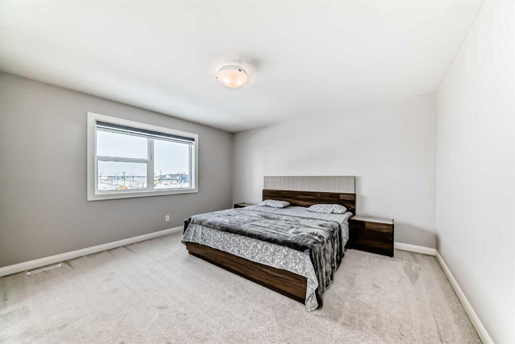 375 Dawson Harbour Court, Chestermere, Welcome to this beautifully designed home located in the luxurious and modern community of Dawson Harbour. Offering exceptional space, privacy, and premium upgrades, this home is perfect for growing families. As you enter, you are greeted by a spacious main floor bedroom with elegant double doors and a large window, conveniently located beside a full bathroom with a bathtub, ideal for parents or guests even making this section of the home highly functional for multi-generational families. The main floor also features a huge pantry with potential for a future spice kitchen, a functional mudroom with closet space, and a stunning kitchen with ceiling-height cabinetry and quality appliances including a gas stove, built-in microwave, hood fan, refrigerator, washer, and dryer. Situated on a fully fenced rectangular lot, this home offers rare privacy with no houses in the front or back. Upstairs, the impressive primary bedroom features a double vanity, large soaking tub, separate standing shower, private toilet area, spacious walk-in closet, and a large window for abundant natural light. Two additional generously sized bedrooms, a full common bathroom, a bright laundry room with a window, and a huge bonus room complete the upper level. The front attached garage and driveway allow for 4 vehicles to be parked at all times. On top of everything you will still have a peace of mind for having Alberta New Home Warranty for this property. Additional highlights include 9-ft ceilings, central air conditioning, 9 solar panels installed just six months ago with an approximate $20,000 investment for energy efficiency, a newly installed fence, and a separate basement entrance with 9-ft ceilings, three large windows, and bathroom rough-in, offering excellent future development potential. This house is close to all the amenities like grocery stores, schools, medical offices, restaurants, registry etc. Conveniently located near shopping centres, schools, golf, and Chestermere Lake, with the FreshCo chain coming soon just behind the property, this home offers outstanding comfort, privacy, and everyday convenience in one of Chestermere’s most desirable communities. Moreover, this property only a 20 mins drive to the Calgary Airport and has a great access to Stoney Trail and Deerfoot Trail. Don't miss this opportunity to make this home your dream house. Call your favourite realtor to book the showing as this beautiful house won't last longer owing at this gorgeous home today! Hurry and book a showing!