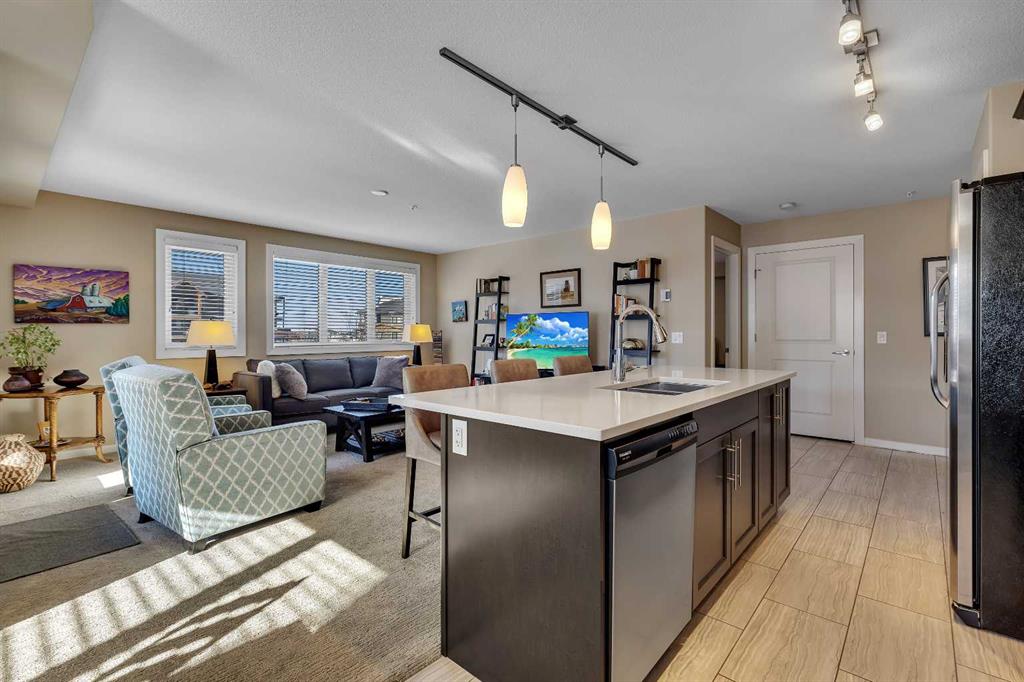 Stunning 1145 sq. Ft apartment, 2 heated underground titled parking stalls, 2 Bedrooms + Den, Corner End-Unit in the Luxurious Adult (18+) Complex of Kincora Summit. This Elegant Condo offers spacious open concept w/ In-Floor Heating, A/C & designer touches throughout, custom built in shelves in pantry, laundry & storage closets, living Room with Access to private covered balcony, gourmet kitchen w/ Quartz Counters & upgraded extended cabinets, Island, top of the line Stainless Steel Appliances & Tiled Floors, Master Quarter with Walk-through Closet & 3 pc Ensuite, Second Bedroom & Large Den with built in custom cabinets, 4 pc Main Bath, Convenient In-Suite Laundry, Titled Storage Locker on the Same Floor next to Elevator & Secure Titled Underground Parking Stalls. Well, Maintained Complex w/ Ample Visitor Parking. Walking Distance to Walmart, T&T Market, McDonalds and a variety of other restaurants and services. Also close to green spaces, bus & all other amenities. Easy access to Stoney Trail, Airport & University of Calgary. This unit shows pride of ownership. Click on link to view 360 tour.