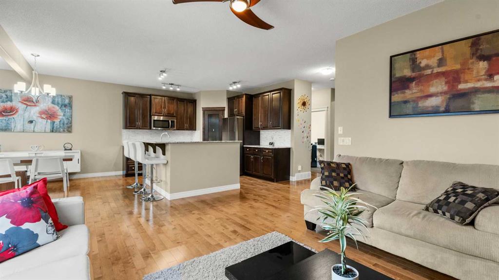 Tucked away on a quiet, family-friendly cul-de-sac in beautiful Cochrane, this fully finished, original-owner home offers the perfect blend of space, comfort, & an unbeatable natural setting. Backing onto walking paths & a picturesque ravine, & set on a large pie-shaped lot, this property delivers privacy, stunning views, & room for the whole family to grow. Step inside to a spacious front entry & a bright, open-concept main floor featuring 9’ ceilings & rich hardwood flooring. A versatile main floor den provides an ideal home office or flex space. The mudroom is an additional feature with a double closet for ample storage. It is conveniently tucked behind a stylish barn door off the garage—keeping everyday life organized & out of sight. The kitchen is both beautiful & functional, highlighted by oversized cabinetry, granite countertops, stainless steel appliances, a large corner pantry, & an island with breakfast seating. (New stove & dishwasher – 2024; refrigerator – 2025.) The adjacent dining area overlooks the ravine, creating a stunning backdrop for family meals. Step out onto the sun-drenched deck & huge backyard—the perfect place to unwind while the kids play. Enjoy the same ravine views from the living room which is anchored by a cozy gas fireplace. Upstairs a large & sunny bonus room has vaulted ceilings, a wet bar, & offers flexible living space while capturing lovely mountain views! A dedicated upper laundry room provides excellent storage & everyday convenience. Now onto the spacious primary bedroom - a true retreat featuring a walk-in closet, tons of natural light & a 5-piece ensuite with southeast mountain views, corner soaker tub, double vanity, & private water closet. Finishing the upper level are two more generously sized bedrooms, both with double closets. They share a thoughtfully designed Jack & Jill 4-piece bathroom with a separate water closet—ideal for busy mornings. Downstairs the professionally finished basement (2023) is bright & welcoming, complete with egress windows, a recreation room, games area, a massive 4th bedroom, & a beautiful 4-piece bathroom—perfect for guests, teens, or extended family. Brand new hot water tank in 2024 too! The location of this home is exceptional. Playgrounds are just a short walk away, & the community offers extensive pathways, green space, & a strong sense of connection. You’re less than 10 minutes to downtown Cochrane, 40 minutes to downtown Calgary, 20 minutes to Crowfoot shopping, & only an hour from the mountains in Banff. With the new Highway 1A/22 interchange set for completion in 2026, commuting will be even more convenient. Cochrane is celebrated for its small-town charm, western character, stunning Rocky Mountain views, & outstanding quality of life—offering more space & value while keeping city amenities within easy reach. This is a rare opportunity to own a lovingly maintained, move-in ready family home in a growing, sought-after community. Book your showing today.