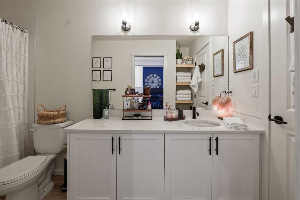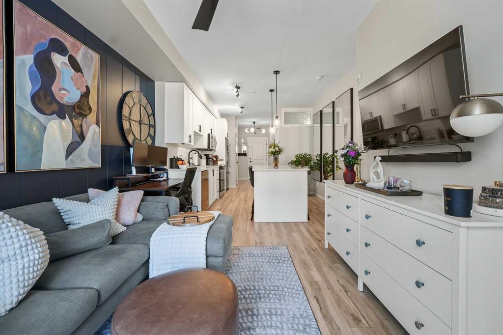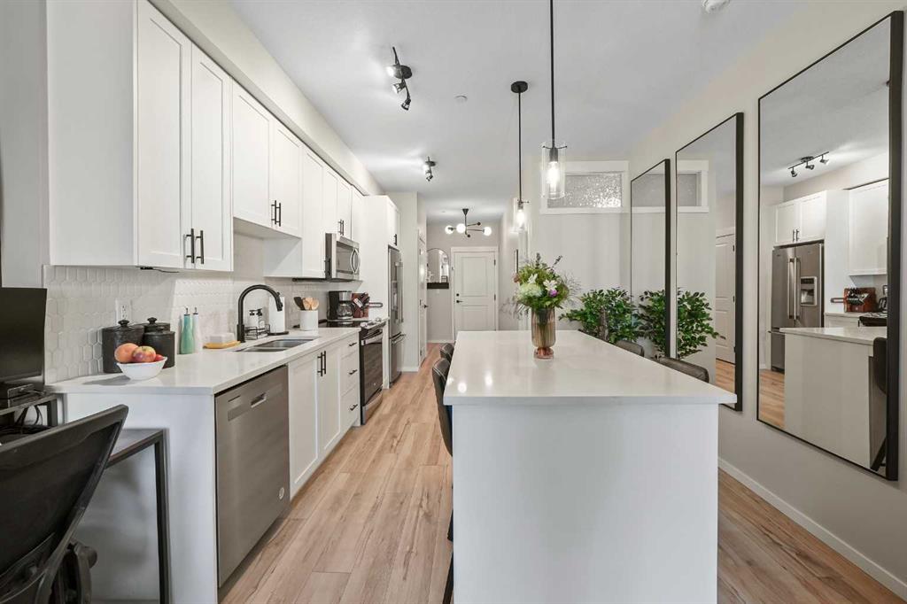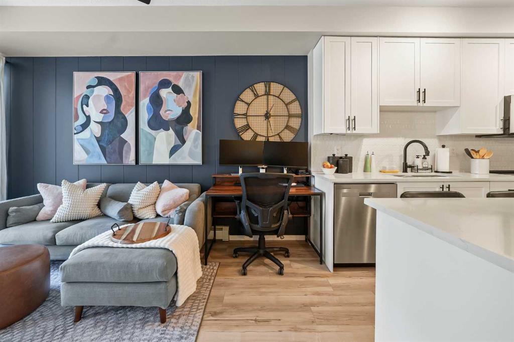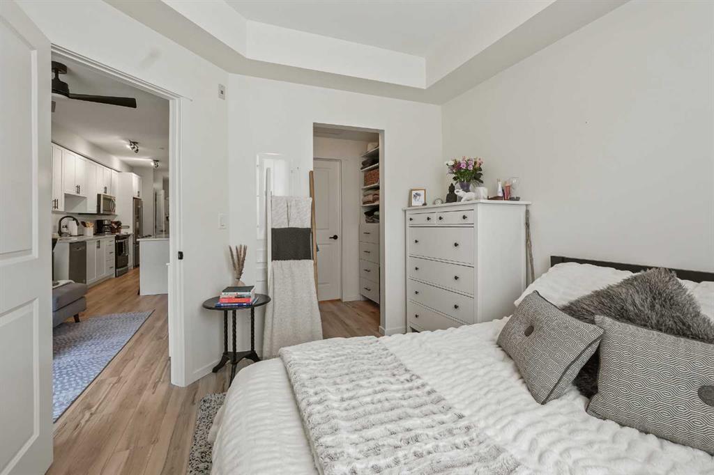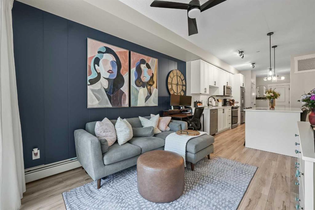 Welcome to this beautifully upgraded 2-bedroom condo offering fashionable charm. Thoughtfully designed living space in the desirable community of Sage Hill. This spacious, open-concept home is filled with natural light & designed for both comfort & style. The main living area features a stunning custom feature wall that creates a striking focal point & adds warmth & character to the space, perfect for entertaining or relaxing at the end of the day. The modern kitchen flows seamlessly into the dining & living areas, offering ample cabinetry, a large island, & a functional layout ideal for the everyday living. The fridge has a water & ice dispenser. The primary bedroom includes a generous walk-in closet & convenient Jack and Jill access to the bathroom, creating a semi-ensuite feel. The bathroom has been enhanced with function, installed shelving for added storage & organization, along with an additional light fixture that provides bright, even illumination thoughtful upgrade that elevates both function & comfort. The 2nd bedroom is well sized & versatile, perfect for guests, a home office, or a child's room & features a ceiling fan for added comfort. An additional ceiling fan in the main living area ensures year round airflow & efficiency. Enjoy the convenience of a dedicated in-suite laundry room with stackable washer & dryer, a spacious private balcony with gas for the B.B.Q. ideal for morning coffee or evening relaxation. The deck has a smoked glass divider between you and your neighbor for added privacy. There is a titled underground parking stall & an assigned underground storage unit, offering both security & additional storage space. With its stylish upgrades, smart layout, & inviting atmosphere, this home offers exceptional low-maintenance living in one of NW Calgary's most sought-after communities. Condo fees include all except electricity. Approximate cost is $ 90.00 a month. Rough in Central Air is in unit. The bulk head is in the primary bedroom. The Air conditioner would be installed on the deck, if this is something a new owner would like to do. Visitor parking available. The owner can register the car/license number for their guests, so no issues with being towed. There is also street parking . Pay attention to the huge greenspace, walking path. Enjoy a leisurely stroll on the path or climb some hills. 3 ponds that bring added beauty. Watch for baby ducks coming soon. This unit has been well loved and cared for. Pride of ownership shows. Possession is very flexable. Call your favorite realty for a private viewing.