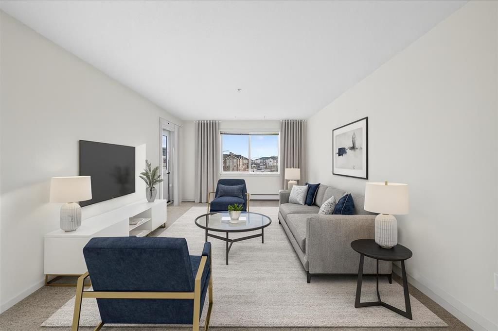 Welcome home to this inviting 2 bedroom plus den, 1 bath, 3rd floor condo in Skyview! This amazing condo features quartz countertops, stainless steel appliances, and an open layout filled with ample amounts of natural light from its large south facing windows. The home offers a comfortable blend of modern finishes and everyday practicality, making it an excellent choice for first time home buyers, investors, and downsizers alike! Ideally located near grocery stores, transit, and key amenities as well as just minutes from Stoney Trail and the Calgary International Airport this unit provides exceptional convenience for everyone. You will also enjoy a titled underground parking stall, along with access to a private fitness center, recreation room, a private dog run and a community garden where you can grow your own fruits and vegetables. Pets are permitted with certain size restrictions. A bright and welcoming condo in a growing community, ready to move in and enjoy. Book your showing today!