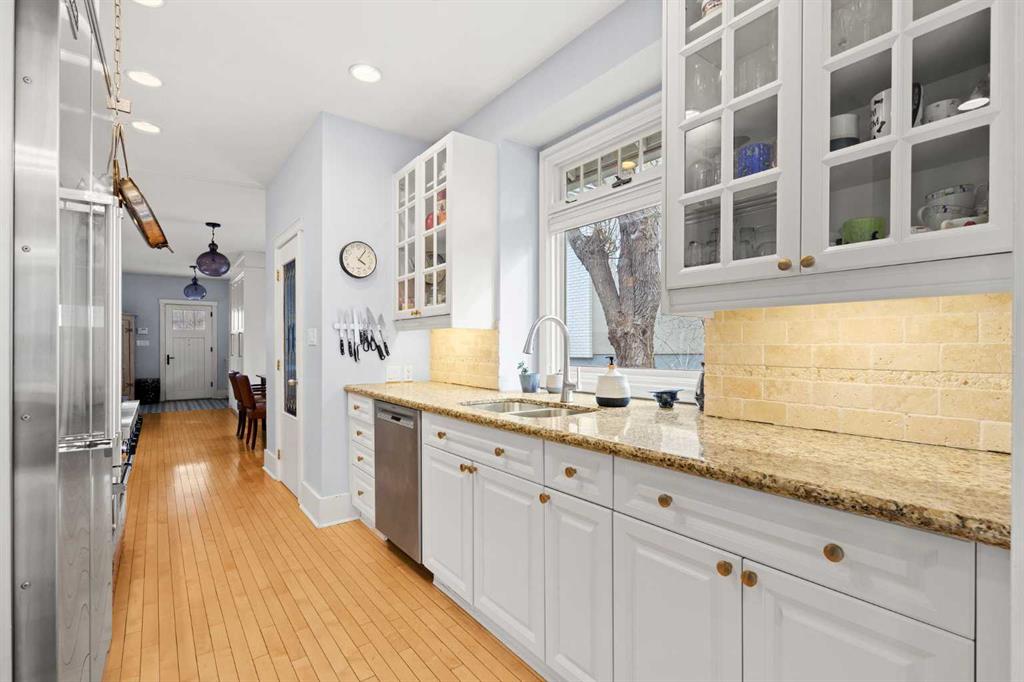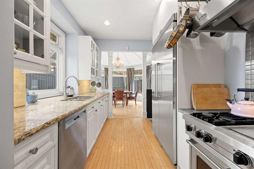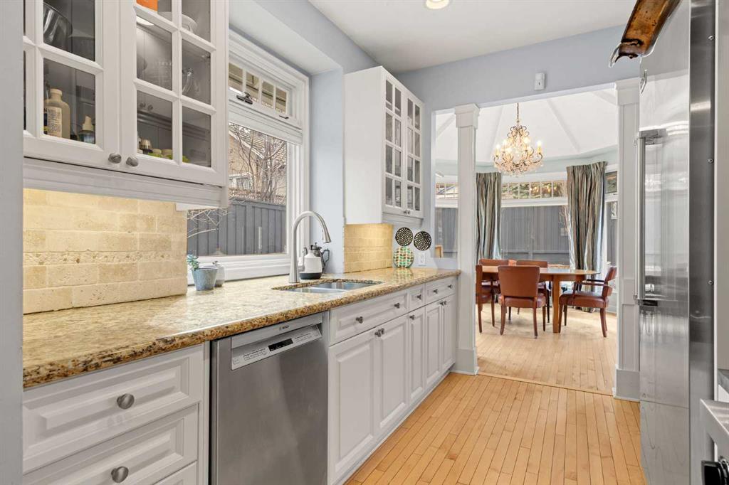 Open House Saturday March 28, 12pm – 2pm. Nestled on a quiet and meandering street in the heart of Scarboro, this Arts and Crafts bungalow reflects the charm of the community with its inviting front porch and graceful details. With only 300 homes, Scarboro offers welcoming neighbours and a close-knit community feeling. Inside, the home has been lovingly updated to enhance its original character, while offering a newer roof, electrical and plumbing and air conditioning. Natural light pours into the home from every angle, with beautiful south exposure along the side and a sunny west facing backyard. The custom crafted front door and tiled entryway leads into a space rich with charm – featuring custom built-ins, original hardwood, the original brick column and a timeless wood burning fireplace. The thoughtfully designed kitchen is a true standout, with a 6-burner Viking gas range, Viking fridge, walk-in pantry with an original stained-glass window and the sink perfectly beneath a window. Just beyond, an opulent dining room addition is surrounded by elegant windows, making it perfect for everyday life and entertaining loved ones. Double doors lead seamlessly to the backyard oasis. Completing the main floor are two well-sized bedroom with spacious closets fit with built-ins and a 5-piece bathroom. The thoughtful design extends to the lower level offering a cozy family room, flexible living space, LED lighting, abundant storage and the perfect laundry area with a sink and hanging space. Additionally, there is a well-appointed third bedroom with large windows, custom built-ins, a walk-in closet and a 5-piece bathroom. Outside, the yard is picturesque and private with a paved stone patio area with a pergola, quaint garden boxes, raised perennial beds and even space for a trampoline. The exterior of the home has been updated with beautiful paint and a newer fence. Located just steps from it all - a stone’s throw to the dog park, Tennis Club, river walking pathways, skating rinks with firepits and the vibrant energy of downtown. Families will love being just a walk away to the beloved Sunalta School, known for its high ranking and community feel. With nearby amenities and neighbourhood social groups, this home offers a cherished way of life. A truly special opportunity to live in one of Calgary’s most treasured neighbourhoods.