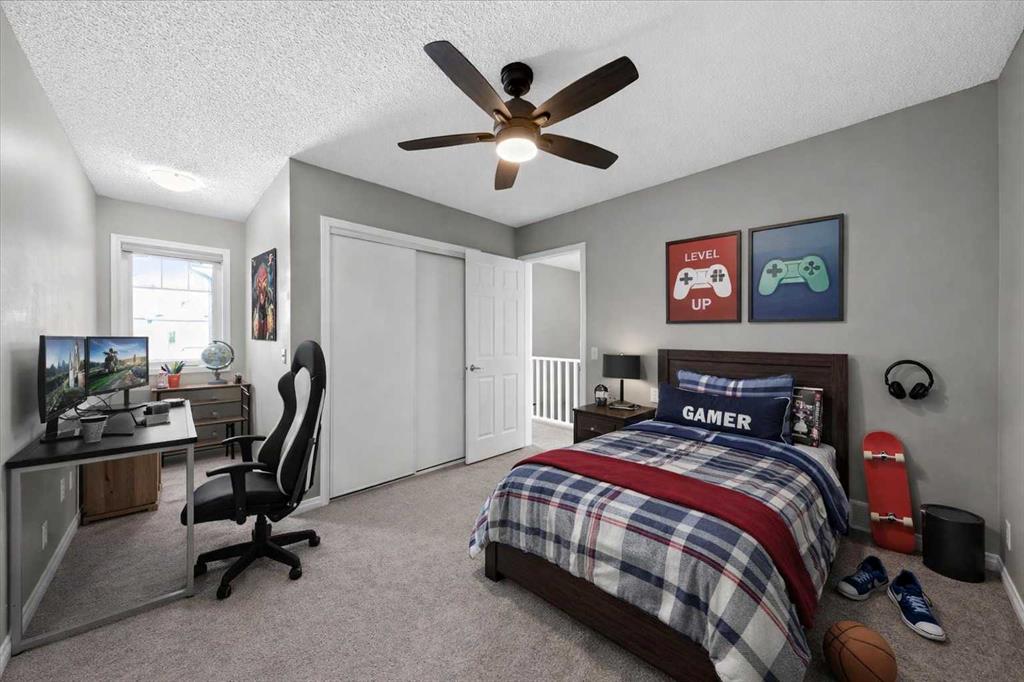 Upstairs, the primary bedroom includes a walk in closet and private 3 piece ensuite. The second bedroom offers a built in office nook, ideal for working from home or homework time, along with access to the 4 piece main bath and additional linen storage.