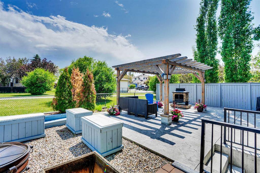 Additional upgrades include four new exterior fibreglass doors, stamped concrete patios in the backyard and side yard, and an 11' x 11' reclaimed wood pergola. The home also features new PEX water lines, 220V outlets in the garage and basement, and rough-ins for an outdoor kitchen, BBQ, and hot tub. All major stainless steel appliances and the gas stove were purchased in 2025, providing a modern, energy-efficient living experience.