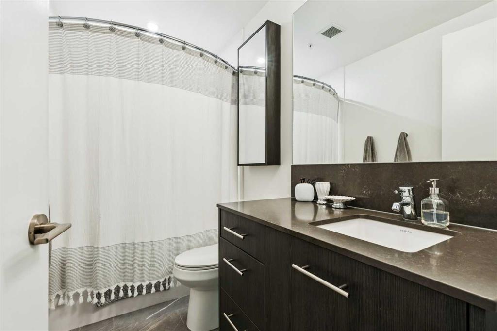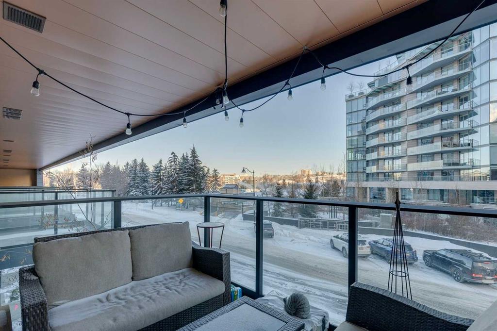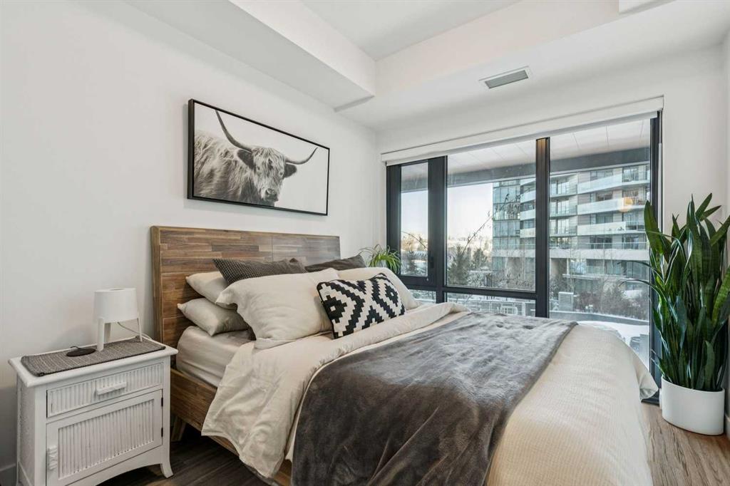 Welcome to Unit 210 at First & Park — in Calgary’s highly sought-after Eau Claire community, where the city meets the river. This contemporary 2 bedroom, 2 bathroom home blends modern design with everyday functionality, offering exceptional value in one of downtown’s most desirable buildings. The open-concept layout showcases a sleek kitchen with quartz countertops, stainless steel appliances, and ample cabinetry, seamlessly flowing into a bright living area that extends to your large balcony overlooking the Peace Bridge and the River - the perfect place to enjoy morning light or unwind after work.The spacious bedroom, full bathroom, and in-suite laundry provide comfort and convenience, while the titled parking stall adds everyday practicality. Residents enjoy premium amenities including a fully equipped fitness centre, stylish party lounge, an outdoor patio and gas BBQ hookups, secure parcel lockers, two elevators, and concierge service seven days a week — all within a quiet, boutique-style building. Located just steps from the Bow River pathways, Prince’s Island Park, Eau Claire Market, and downtown’s top restaurants, cafés, and shops, this home offers the perfect balance of lifestyle and location. Whether you’re a first-time buyer, investor, or searching for a refined downtown residence - this home checks every box for sophisticated inner-city living. Book your showing today!