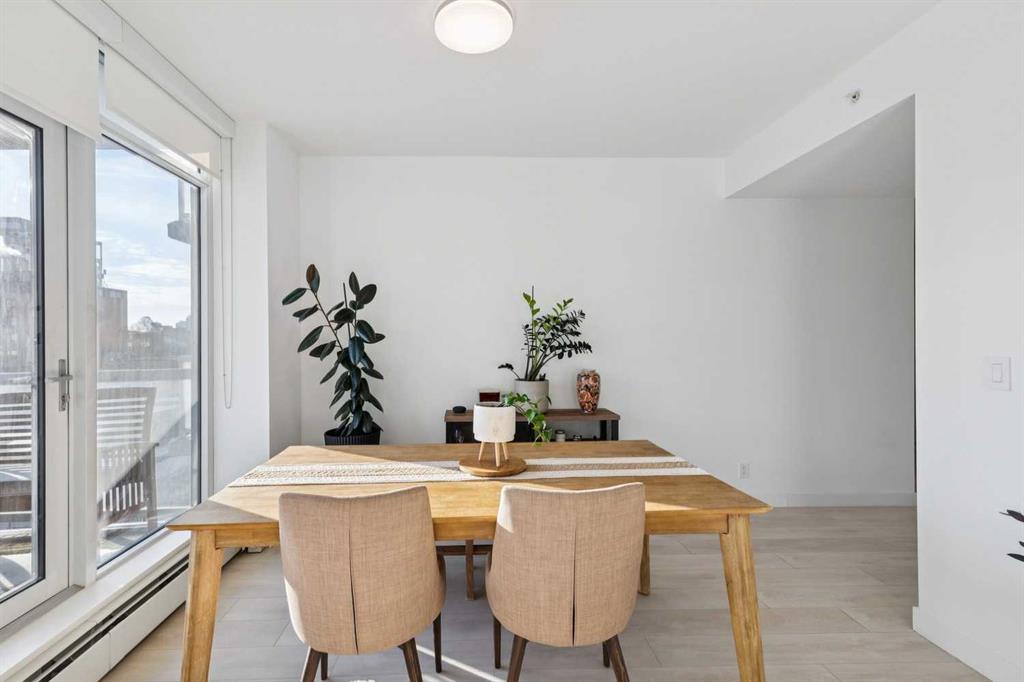 The Smith building is in THE BEST Beltline location. Unit 405 is a large 2 bed + 2 full bath CORNER UNIT at the front of the building, with titled parking and a rare/amazing titled storage locker. Designed for entertaining + comfortable living, the floor plan is anchored by a galley kitchen with custom cabinetry, quartz counters, gas cook-top + wall oven, microwave, plenty of storage, and breakfast bar. This over looks formal living/dining spaces which are flooded by natural light and enjoy access to the fabulous patio with park + downtown views + an inner city vibe. The primary bedroom has plenty of closet space w/ organizers, and an ensuite bath w/ HEATED FLOORS, soaker tub, rain head shower fixture, and high end plumbing. The second good sized bedroom has incredible views, a big closet, and direct access to a modern 3-piece bath. Don’t miss the CONCIERGE, IN-SUITE LAUNDRY, bike storage, and easy walkability to restaurants, groceries, parks + downtown.