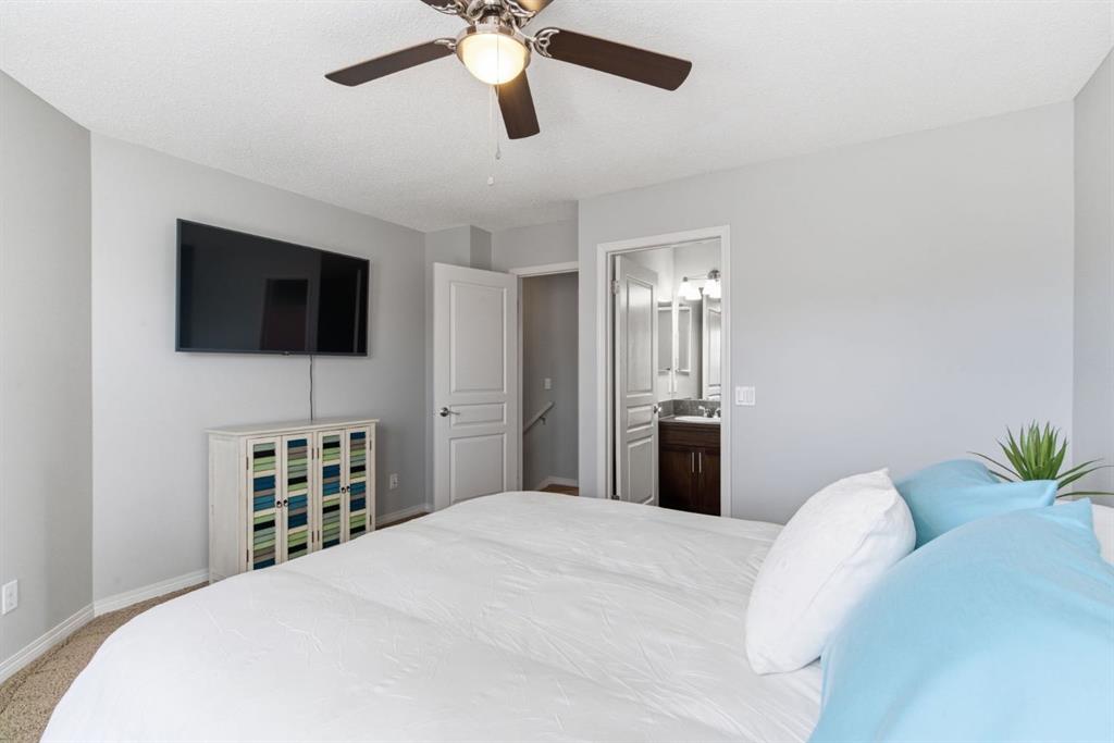 Welcome to this beautifully maintained duplex in the heart of Auburn Bay, one of Calgary’s premier lake communities. Enjoy year-round lake living, with summer beach access, tennis courts, and top tier recreational facilities; perfect for all age groups, active families, and outdoor enthusiasts. This gorgeous NO-CONDO-FEE townhome offers comfort, functionality and a fantastic lifestyle that is just steps away from the Auburn Bay community center and lake area. The main floor provides large living space with central fireplace offering warmth, ambiance and comfort in the cool months of the year. Large windows provide plenty of natural light while enjoying a large open kitchen with large breakfast bar style island. Upstairs you’ll find two generous primary bedrooms, each with its own ensuite bathroom and walk in closet – ideal for a growing family, guests or even a roommate. The basement is partially framed and ready to be developed with downstairs laundry (upgraded washer 1yr old/dryer 2 years old) and the benefit of a new hot water tank (1 yr. old). Step outside to your private backyard, complete with a spacious deck and fully fenced yard with a side gate (that can be used for a dog run if needed). You will enjoy the double detached Garage that is insulated, drywalled and is wired for and ready to accommodate electric vehicle charging. Don’t miss out on this opportunity to live in a family-friendly neighbourhood close to schools, parks, pathways, access to beach club, sandy beaches, ice rinks, shopping, restaurants, South Health Campus, transit access and major south expressways.