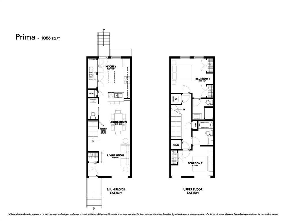 Welcome to Prima at ZEN Livingston, a thoughtfully designed 2-bedroom, 2.5-bath NET ZERO townhome offering 1,086 sq. ft. of modern, energy-efficient living by Avalon Master Builder. Built for comfort and long-term savings, this home features TRIPLE-PANE windows, advanced insulation, and a solar rough-in. The OPEN-CONCEPT main floor showcases luxury VINYL PLANK flooring, pot lights with knock-down ceilings, and a bright living and dining area that seamlessly flows into your FULLY FENCED BACKYARD, ideal for kids, pets, or added privacy. Enjoy a BBQ gas line, plus landscaping and irrigation already included. The modern kitchen is finished with QUARTZ countertops and a 6-piece Whirlpool appliance package, offering both style and functionality. Upstairs, you’ll find two spacious bedrooms, including a primary bedroom with its own ensuite, along with convenient upper-floor laundry. Photos are representative.