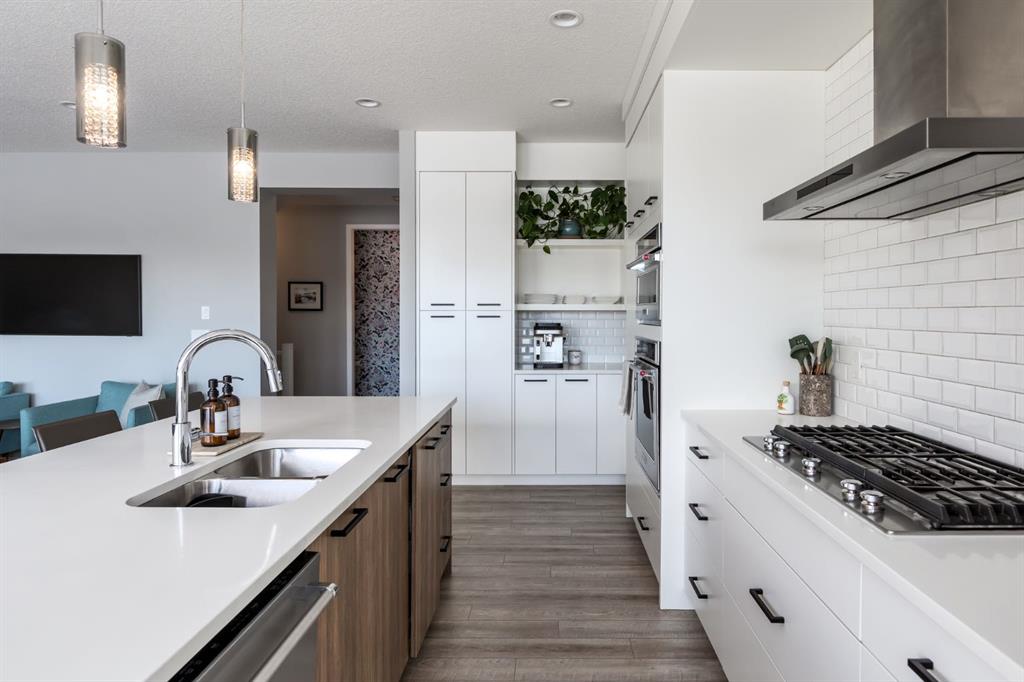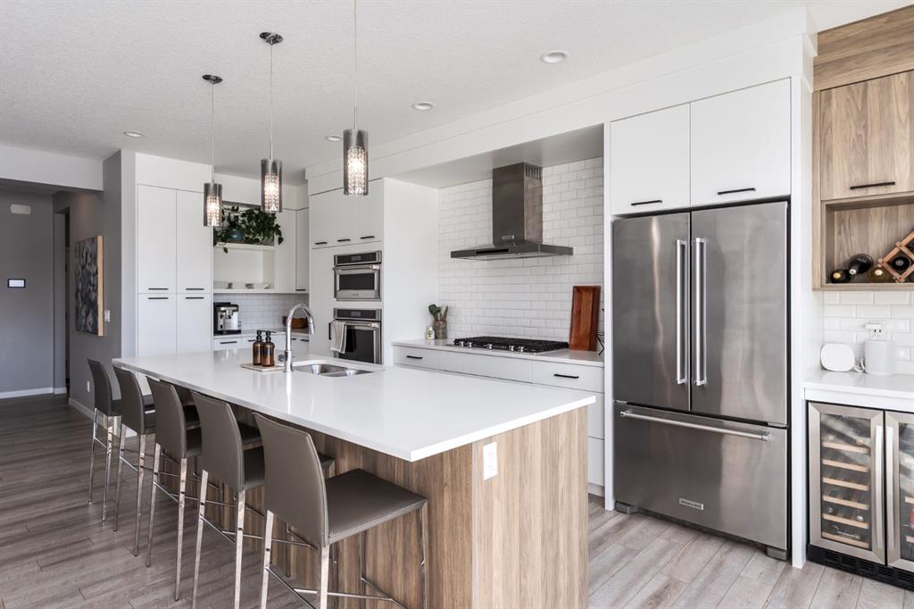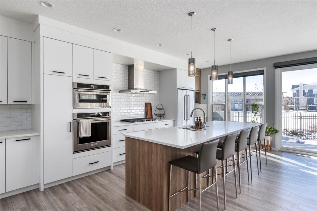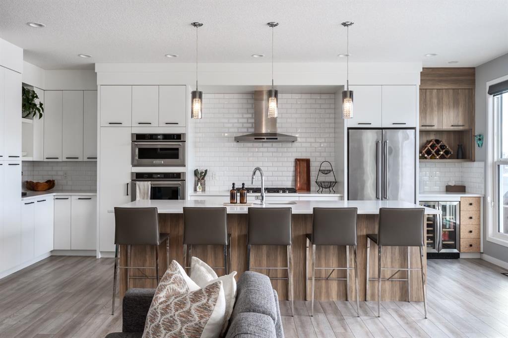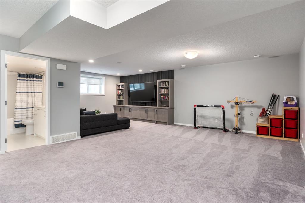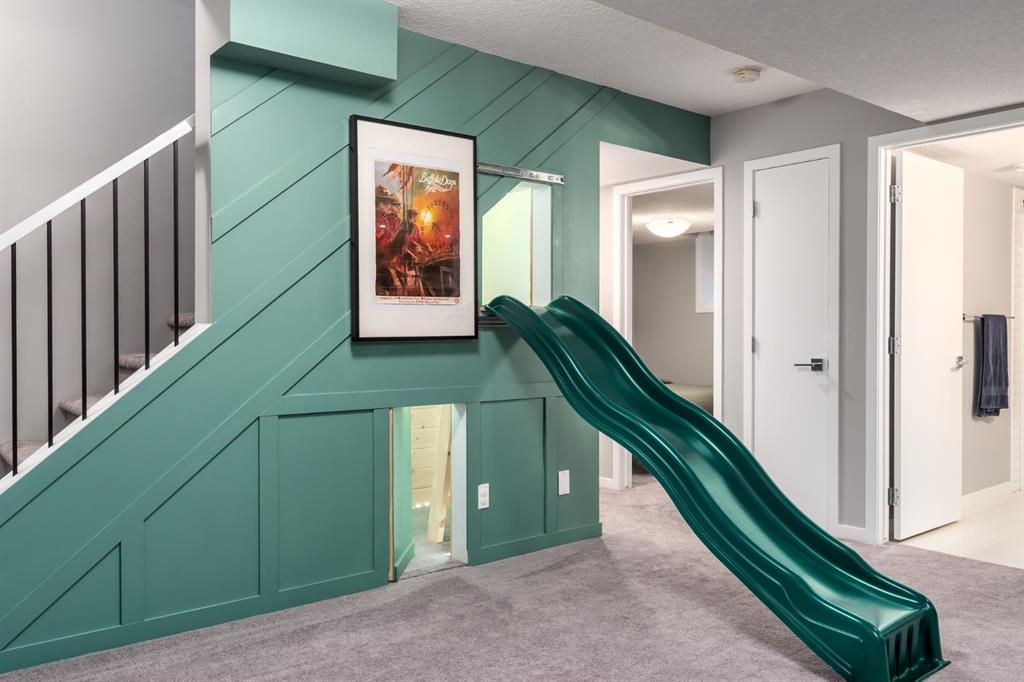 Welcome to an exceptional family home in the heart of West Springs, one of Calgary’s most sought-after westside communities. Tucked away on a quiet cul-de-sac and backing directly onto an expansive green space, this beautifully maintained property offers the perfect blend of lifestyle, functionality, and warmth. With its exposed aggregate driveway and inviting entryway, the home makes an elegant first impression from the moment you arrive. Inside, the sun-filled west-facing backyard creates a stunning backdrop, flooding the open-concept main floor with natural light. The kitchen seamlessly extends into the living room, where a cozy gas fireplace and expansive west windows create an inviting atmosphere for both everyday living and entertaining. Designed with intention, the kitchen features crisp white full-height cabinetry, quartz countertops, KitchenAid appliances, a gas range, custom pantry pull-outs, a dedicated coffee station, and a wine fridge. It’s a refined yet practical space where family life naturally gathers. Just off the mudroom, you’ll find custom built-ins with a bench and a spacious walk-in closet, keeping everything organized and out of sight. Thoughtful design elements throughout the home elevate both style and convenience. Upstairs, four spacious bedrooms and three full bathrooms provide ample room for a growing family. The vaulted bonus room offers incredible flexibility — ideal for a home office, homework zone, or additional entertainment space. The primary retreat is a luxurious escape, complete with a 5-piece ensuite featuring an expansive glass shower with bench, dual sinks, and a fully customized walk-in closet. The children’s bathroom is equally impressive, with dual sinks and a separate enclosed area for the shower and toilet — a layout every parent will appreciate during busy mornings. The fully developed basement is where this home truly shines. A custom kids’ play zone with a hidden door under the stairs and an indoor slide creates a magical space designed for imagination and fun. Step outside to your west-facing backyard oasis with composite decking, a gas line for summer barbecues, and uninterrupted views of the green space beyond — no rear neighbours, just peaceful open landscape that feels like an extension of your yard. Notable upgrades include solar panels for long-term energy savings and a heated garage with 12’ ceilings, built-in tire shelving, and wall-mounted slat storage systems for exceptional year-round organization. Living in West Springs means access to top-rated schools including St. Joan of Arc, West Springs School, Rundle College, and Calgary Academy, along with boutique shopping, dining, quick access to downtown, and seamless routes to the Rocky Mountains. With its rare green space setting, family-focused layout, and elevated finishes throughout, this West Springs gem offers space to grow, room to play, and a community you’ll be proud to call home.