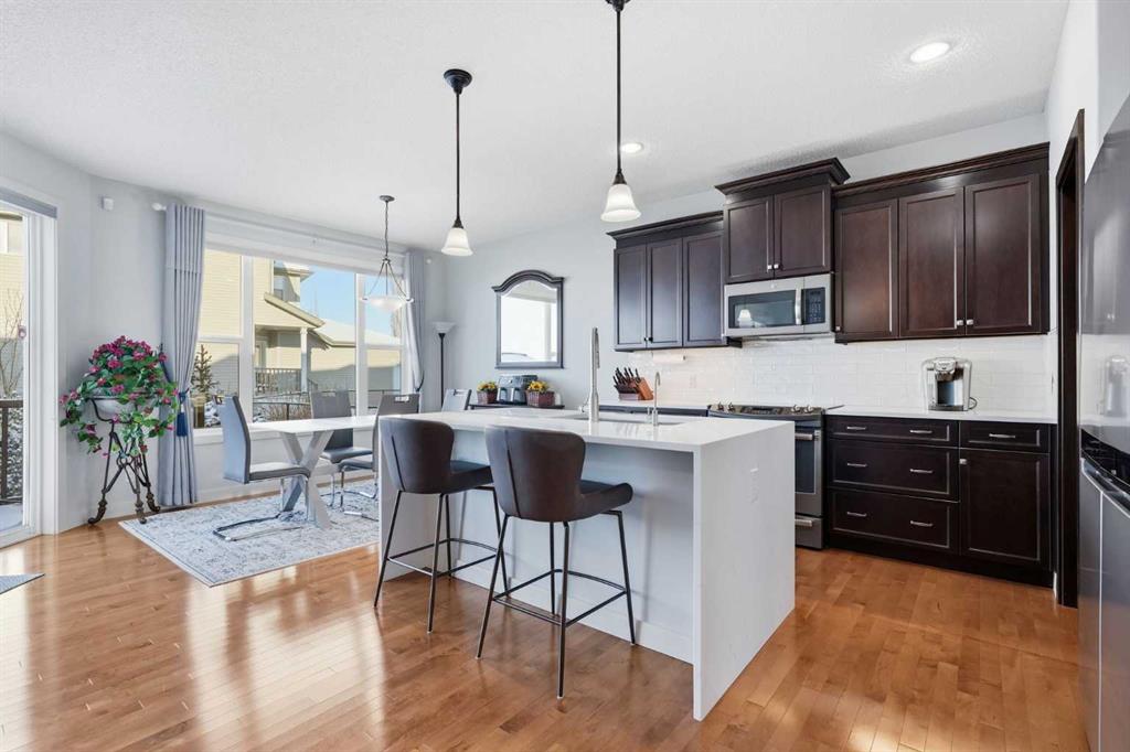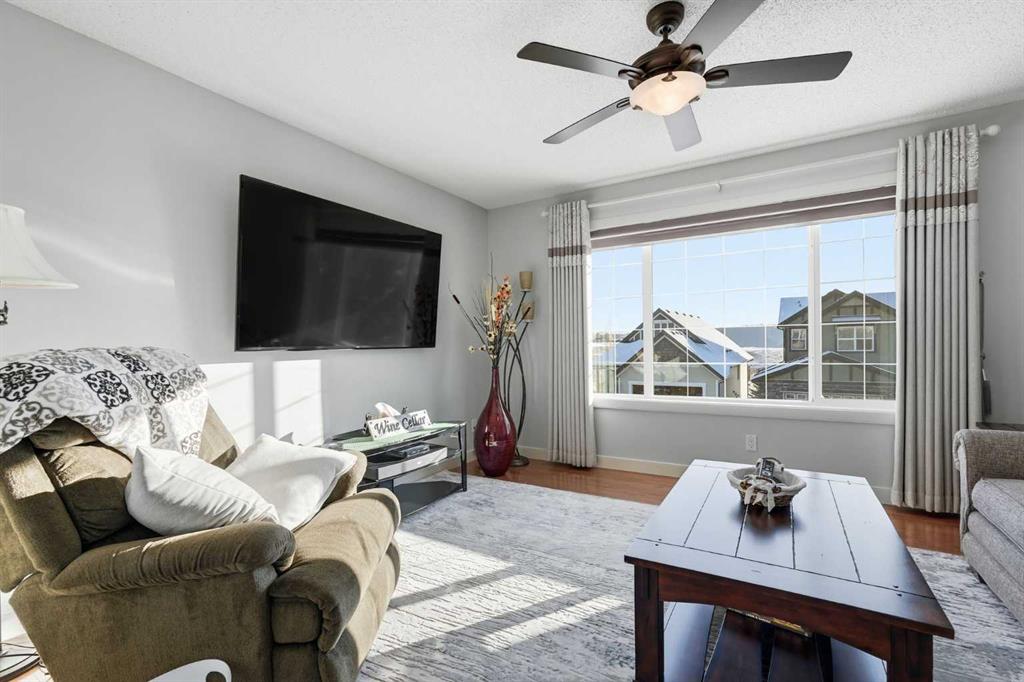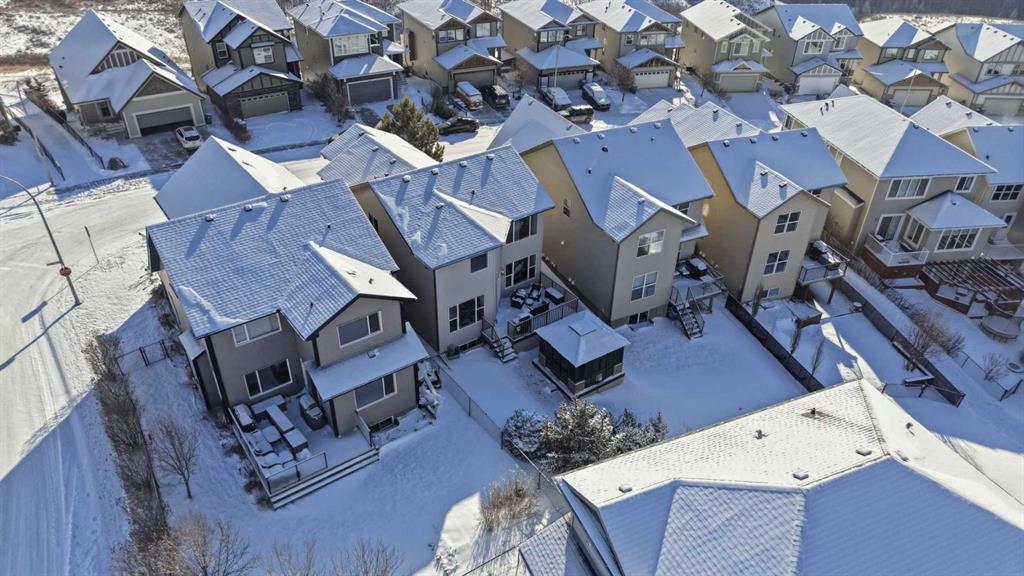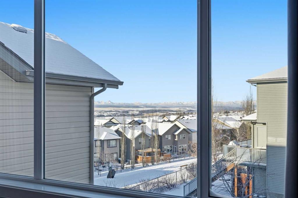 Welcome to one of the most uniquely positioned homes on the street, offering clear, unobstructed MOUNTAIN VIEWS from the backyard, dining room, primary bedroom, and even the ensuite bath. Surrounded by three green spaces, this home delivers a rare sense of privacy, openness, and connection to nature where morning coffee comes with mountain sunrises and evenings wind down under Cochrane’s painted skies.