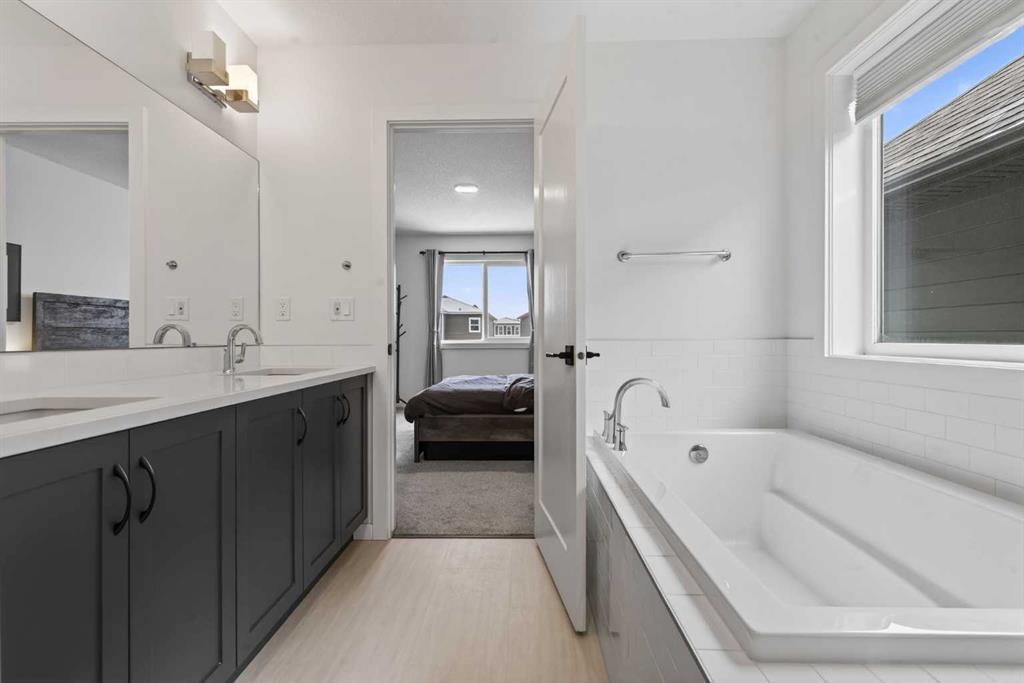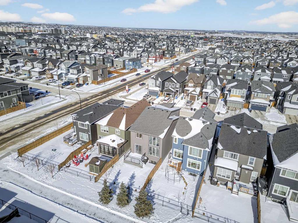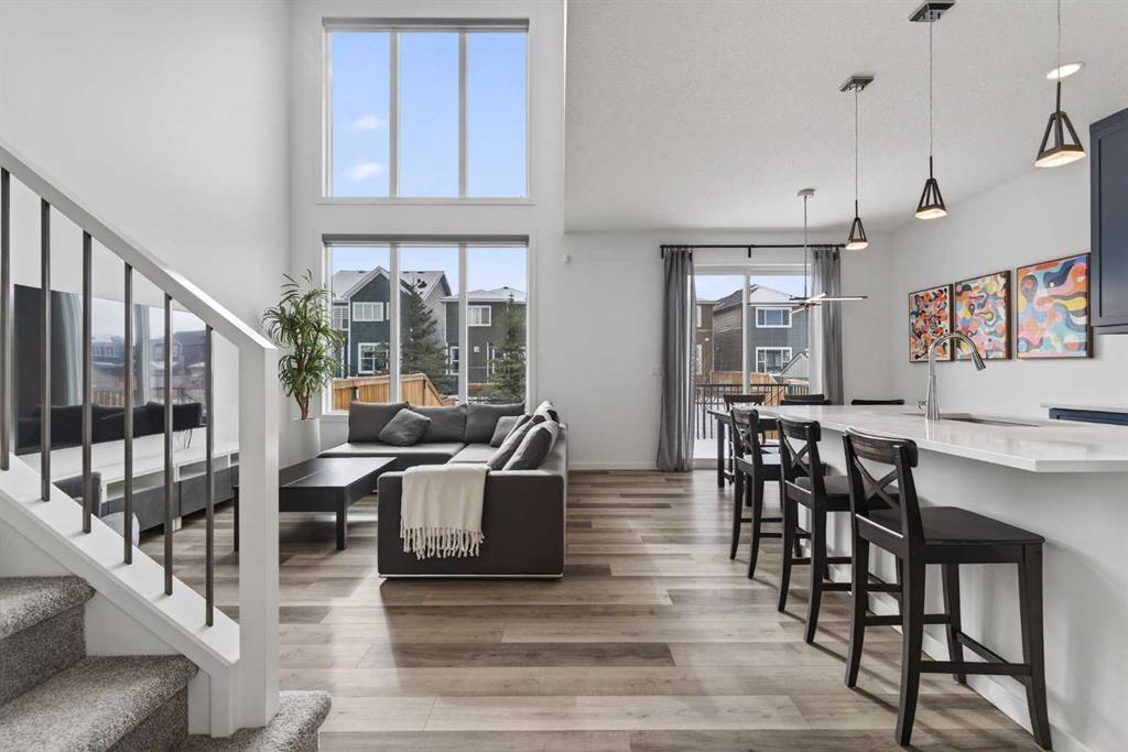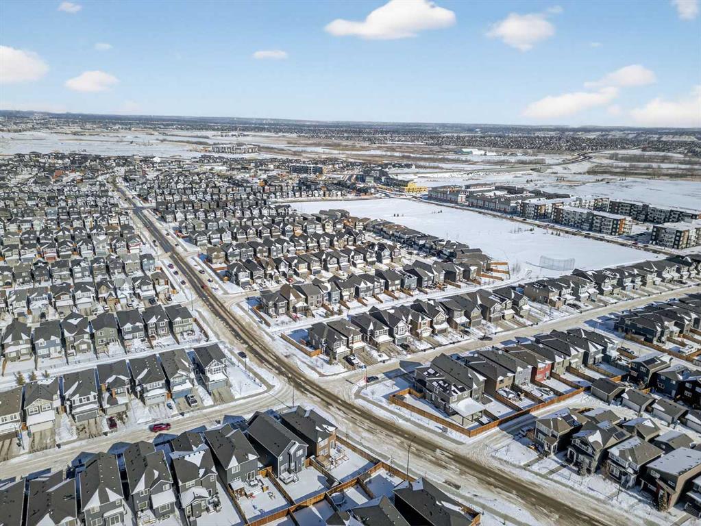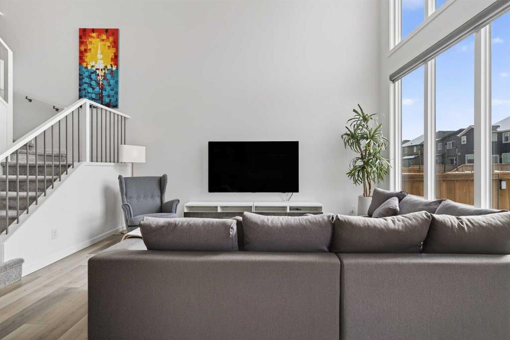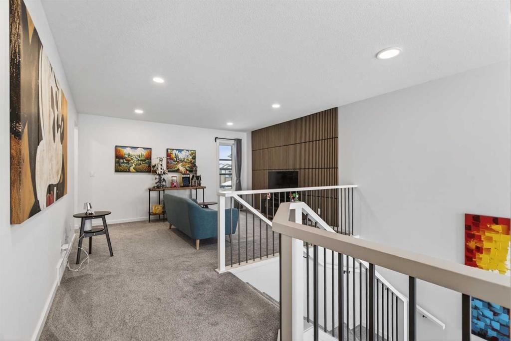 Why buy brand new when you can have “like new” with all the extras already complete? With over 2,800 sq ft of professionally developed living space, including a builder-finished basement, this home offers the upgrades and finishing touches many new builds simply don’t include. Landscaping worth over $10,000 is already done, the air conditioning is installed, and appliances like the washer and dryer are included — no upgrade fees, no post-possession expenses, no waiting. Inside, the thoughtful layout begins with a bright front office, convenient half bath, and a mudroom that leads through a walk-through pantry into a beautiful kitchen featuring quartz countertops, a gas stove, and a large island. The show-stopping open-to-below design is anchored by massive south-facing windows that flood the home with natural light and create an airy, elevated feel throughout the main living space. Upstairs offers a spacious bonus room with a feature wall, two well-sized bedrooms, a full bathroom, and a primary retreat where the bedroom flows into a private ensuite with a tile shower and soaker tub, continuing through to a walk-through closet and directly into the laundry room.