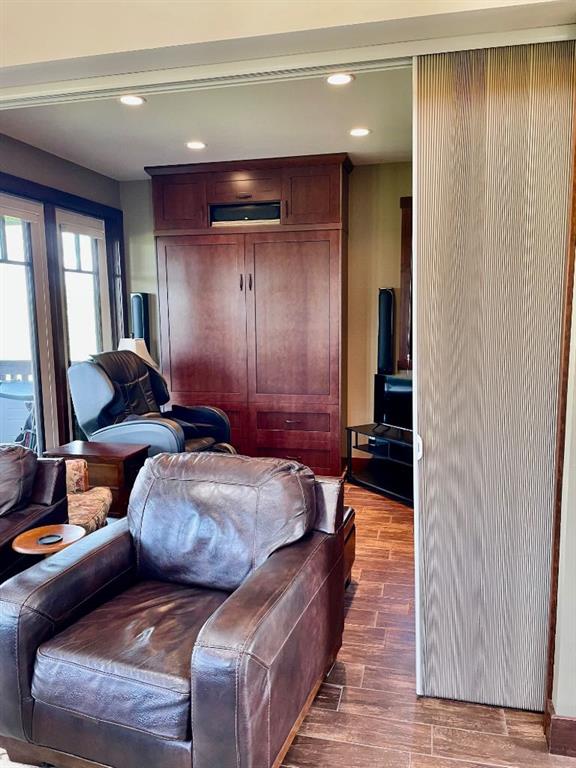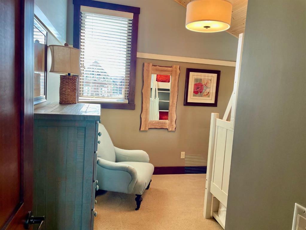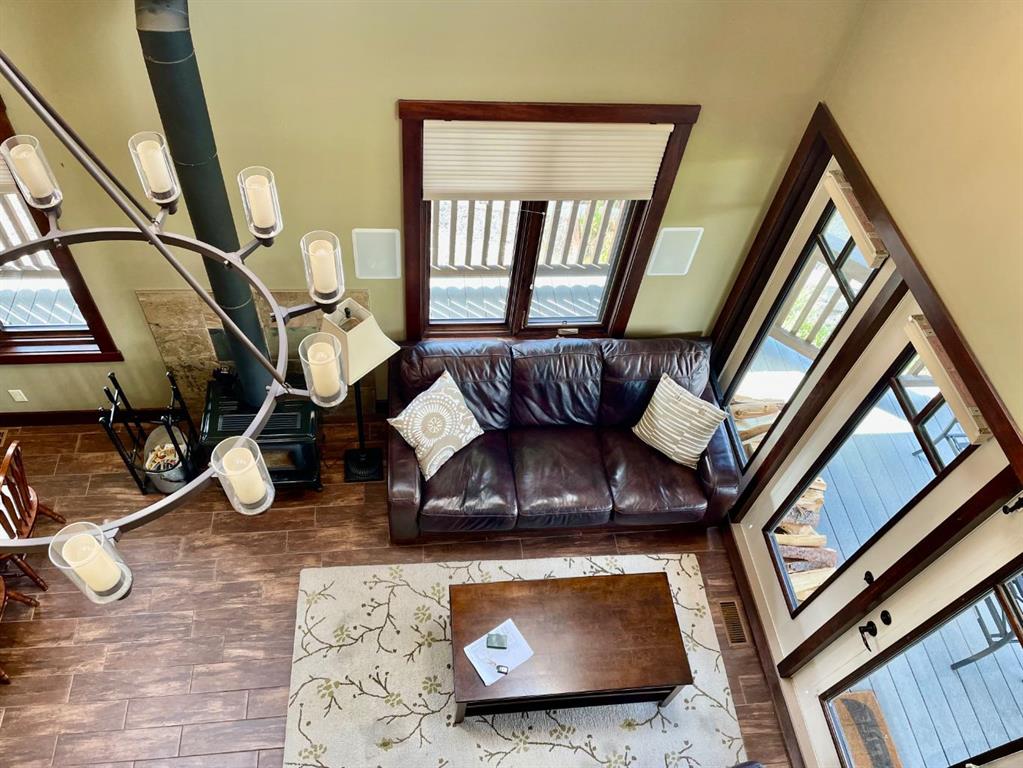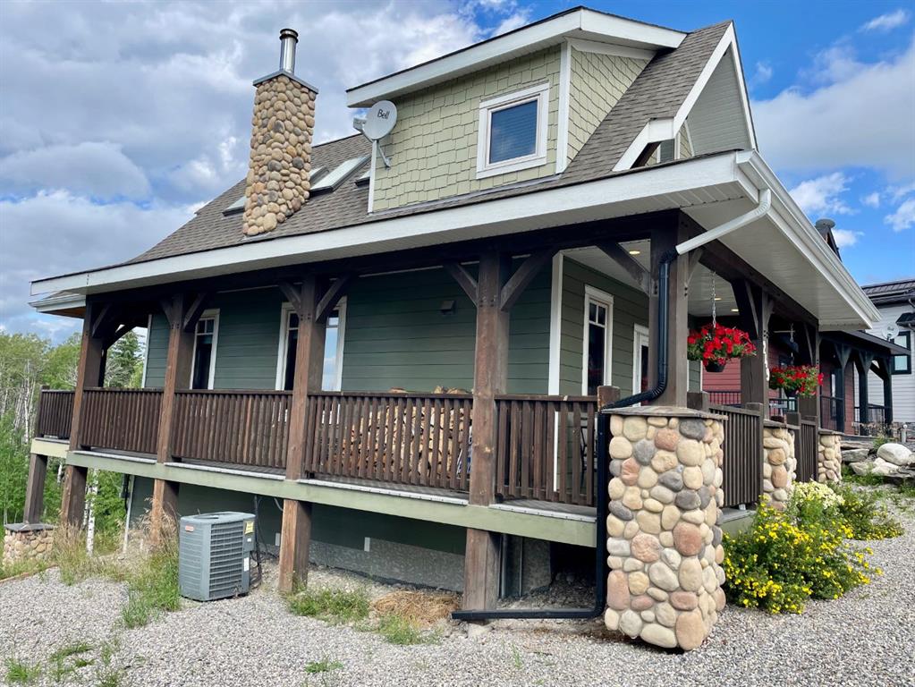 Luxury Cottage Retreat in Exclusive Gated Community – CottageClub at Ghost Lake Quality-crafted by True North Mountain Homes, this high-end cottage offers the perfect blend of comfort, style, and privacy in one of Alberta’s most sought-after recreational communities—just 30 minutes west of Calgary. Located in a quiet, gated community in Phase 1, this home backs onto a serene ravine with unobstructed views, offering rare glimpses of Ghost Lake and the Rocky Mountains. Enjoy sunsets on the massive west-facing covered deck with pot lighting—an ideal spot for entertaining or simply relaxing in total privacy. Your east-facing front porch is perfect for morning coffee, all wrapped in charming curb appeal with Hardie Board siding, stone accents, and a wraparound from balcony to front porch. Inside, be greeted by soaring vaulted ceilings with skylights, a chandelier, and in-floor heating on the main level and in all bathrooms. The open-concept kitchen features full-height cabinetry, quartz counters, tile backsplash, and a huge pantry, with a dining area boasting a built-in bench. The living room’s wood stove adds cozy charm, while a retractable wall with a Murphy bed offers flexible guest space. A main-floor 3-piece bath includes a steam shower and quartz counters. And for those hot summer days there is air conditioning. Upstairs, the primary bedroom’s private balcony showcases views of the lake, mountains, and Wildcat Hills. A second bedroom and heated half-bath complete the upper level. The undeveloped lower level has 6 foot ceilings, there is laundry, a second fridge, and ample storage and family room. Gasline brought to the house in 2022 and gas furnace installed in 2022 costing close to $15,000. Driveway 2022 costing over $8,000. Some new blinds in 2022 costing $1,000. Eaves installed too. Community amenities are unmatched—your private beach access, boat launch, and recreation centre with an indoor pool, spray park, outdoor hot tub, gourmet kitchen, fitness room, library, BBQ area, pizza oven, tennis/pickleball courts, community gardens, firepits, and extensive walking trails. Whether you’re looking for a weekend getaway, a summer escape, or year-round living, CottageClub offers a laid-back lifestyle with every convenience. Location: CottageClub at Ghost Lake Bedrooms: 2 + flex sleeping space Bathrooms: 1 full + 1 half Views: Lake, mountains, ravine Proximity: 30 min to Calgary This property’s combination of privacy, quality craftsmanship, and resort-style amenities makes it a rare find. Don’t miss your chance to own a slice of paradise!
