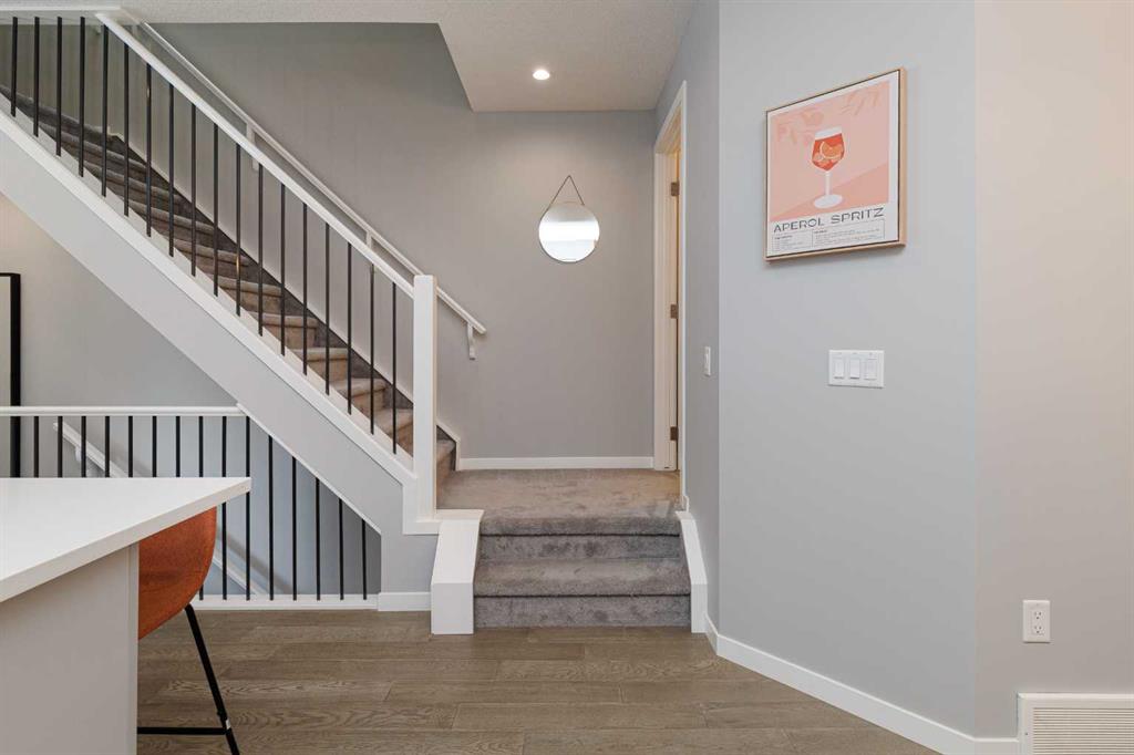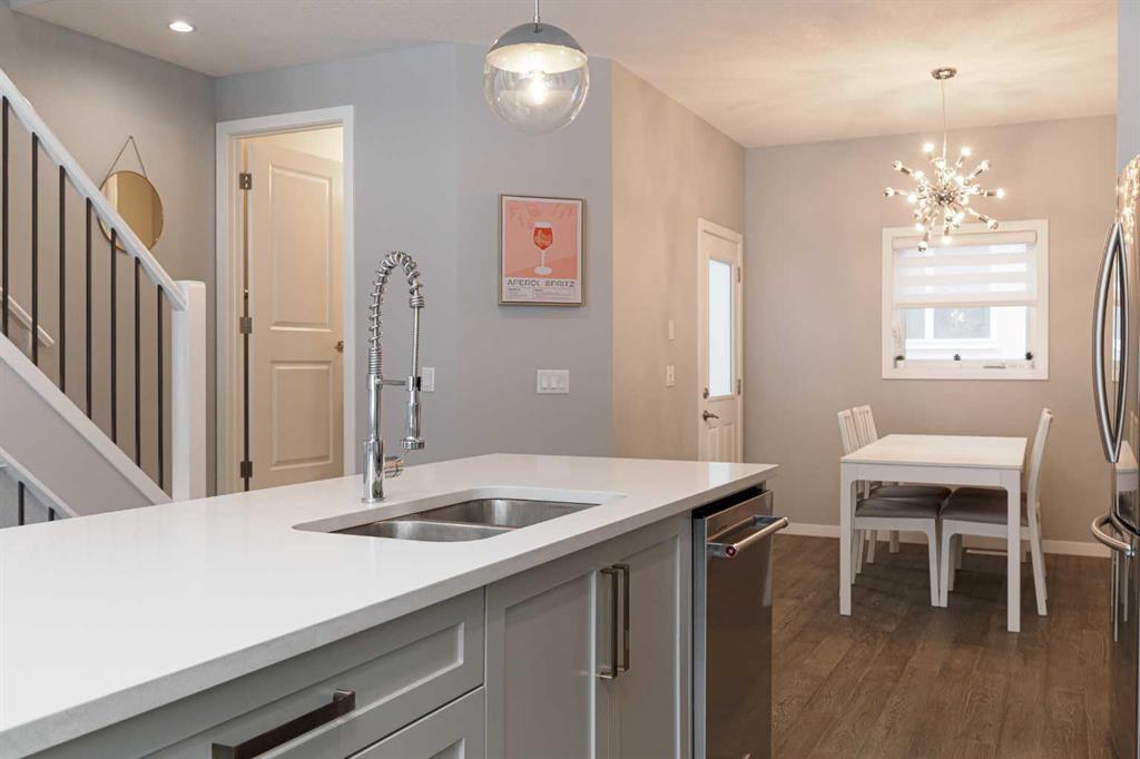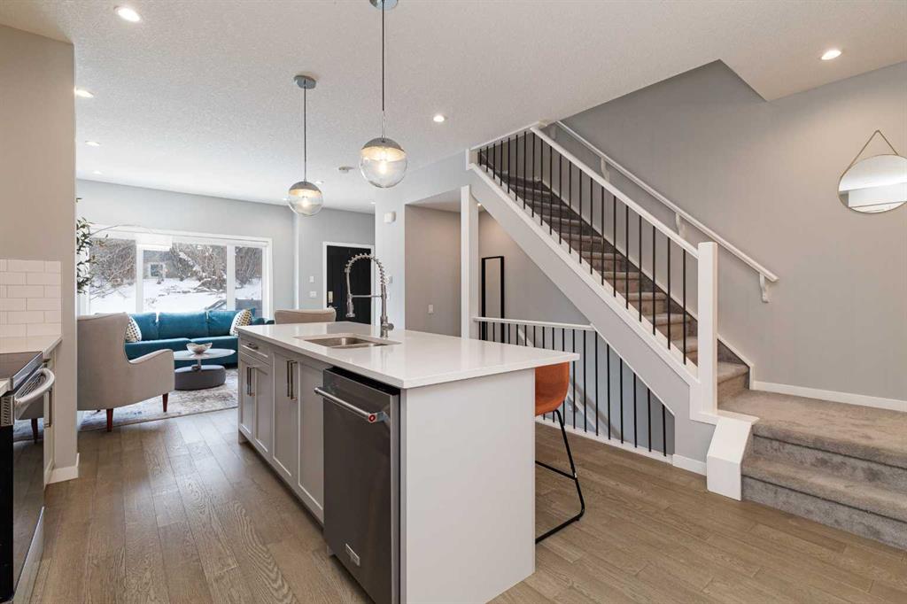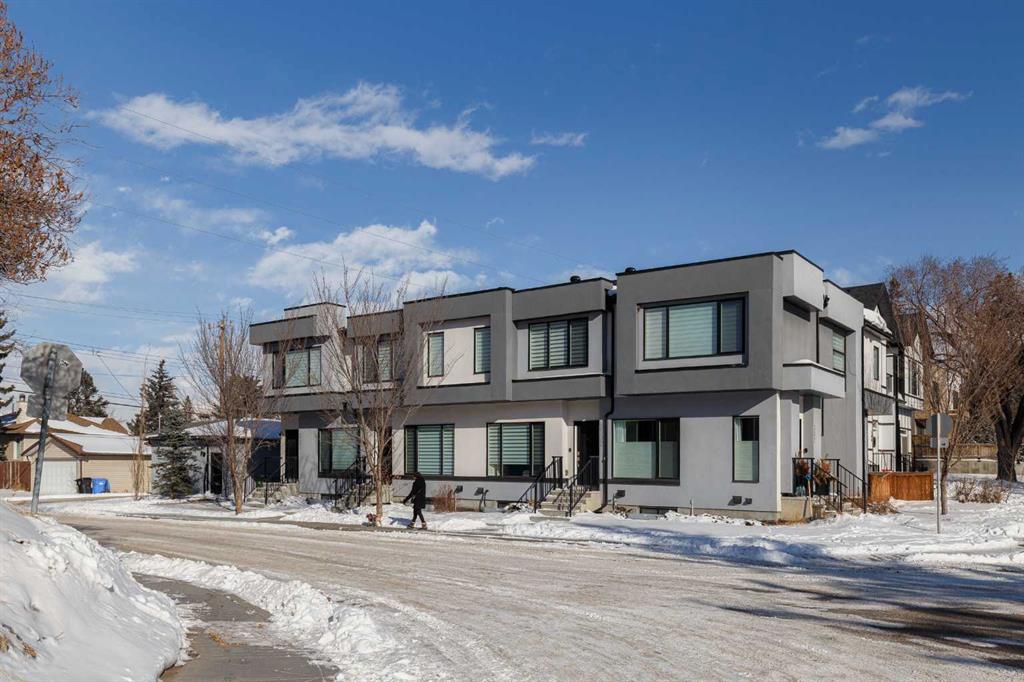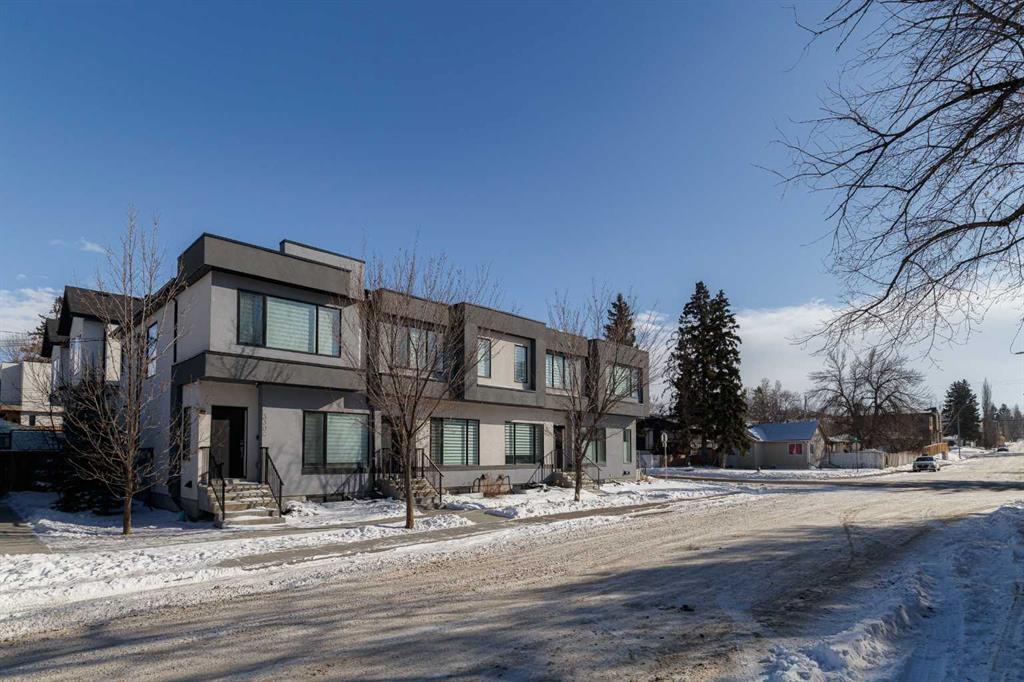 OPEN HOUSE - Saturday, Feb 28. 1:00-4:00 Ideally situated on a serene, tree-lined street in the sought-after community of Highland Park, this exquisitely designed townhouse awaits. Upon entering, you are welcomed by an expansive, sun-drenched floor plan characterized by massive West facing windows that bathe the interior in a warm, natural glow, highlighting the sophisticated modern finishes and wide-plank flooring throughout. The inviting front living room serves as a perfect sanctuary for relaxation, anchored by a sleek focal fireplace with a floor-to-ceiling stone surround. Flowing effortlessly from the living area is the central kitchen featuring an oversized quartz island, stainless steel appliances, and high end cabinetry. This culinary hub transitions gracefully into a dedicated dining area, making the main level an ideal setting for both intimate family evenings and grander entertaining. A two piece washroom completes this floor. The upper level is thoughtfully designed, and houses three bedrooms including a generously sized primary retreat with a walk-in closet and a four-piece ensuite. Down the hall, are the other two bedrooms, and an additional full bathroom. For added convenience, the laundry facilities are located on this upper floor. Extending the living space further, the professionally finished basement features a large recreation room, a stylish bar, a fourth spacious bedroom with walk-in closet, and a third full bathroom, making it perfect for guests or a family member wanting their own separate living space. Beyond the interior, the property includes a small, fenced backyard space, as well as a single detached garage for secure, convenient parking. This is a great opportunity to live in an amenity rich, vibrant neighbourhood, just minutes away from the recreational opportunities at Confederation and Nose Hill Park. Call today to book your showing.