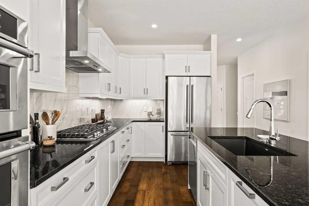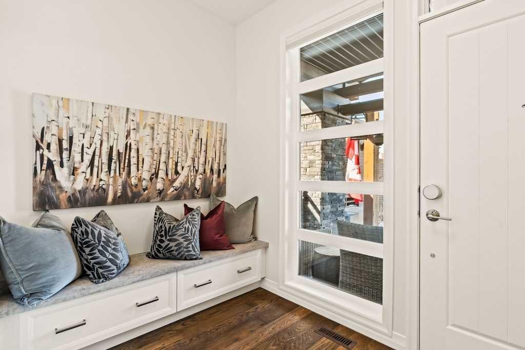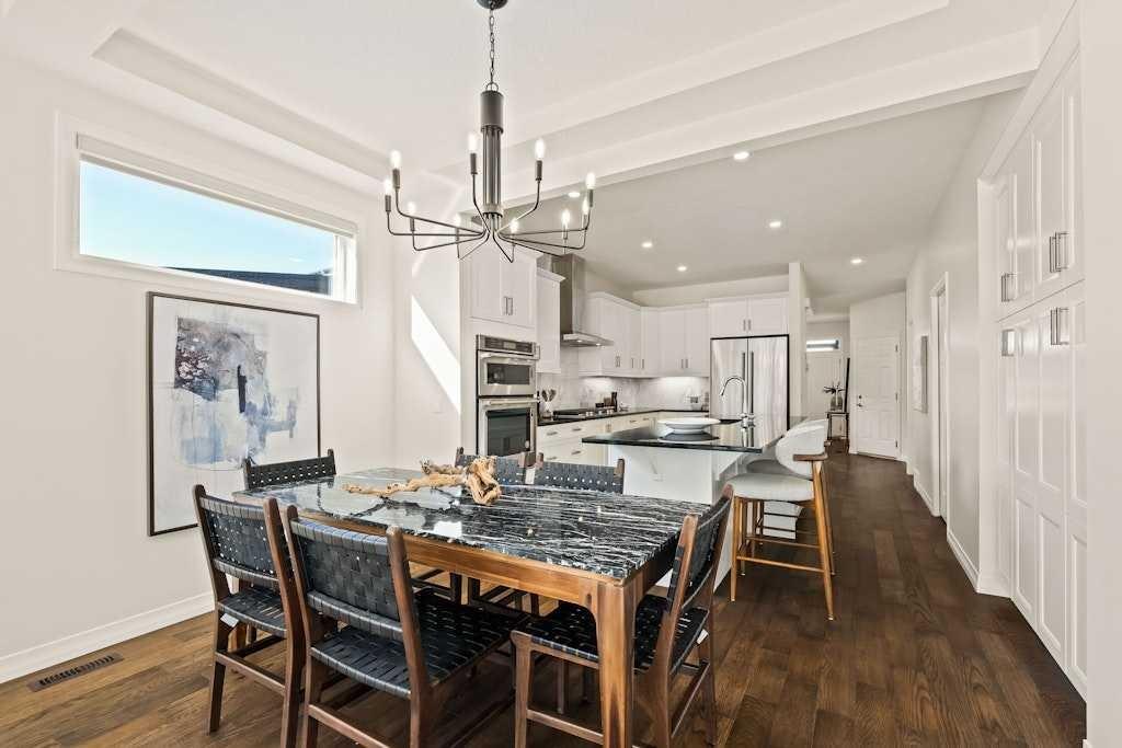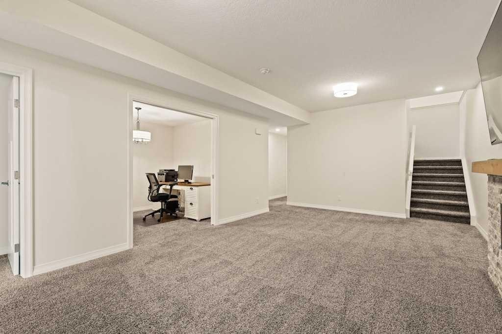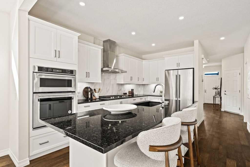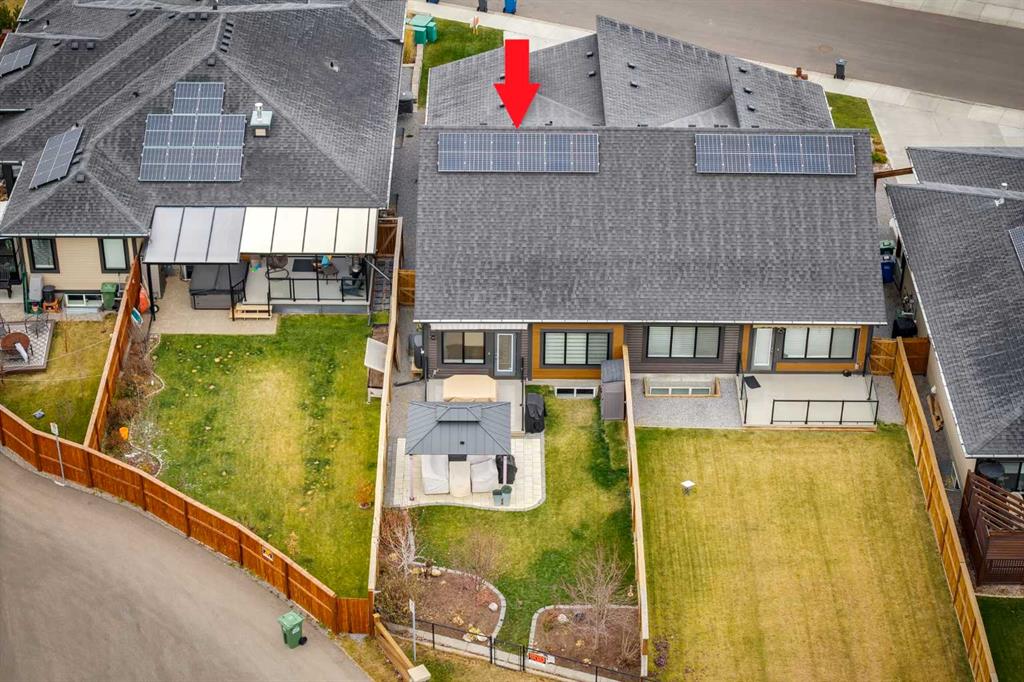 OPEN HOUSE SATURDAY FEB 28th 12-2pm Experience refined single-level living in this impeccably upgraded bungalow villa, quietly tucked away on a cul-de-sac in “River’s Edge”. Backing onto a forested environmental reserve with no rear neighbours, this exceptional property offers privacy plus direct access to the Bow River pathways and Trans Canada Trail—an idyllic setting for those who value both nature and convenience. Thoughtfully built by Jayman for energy efficiency and effortless living, the home features triple-pane windows, active solar panels, dual-zone furnace, UVC air purification, tankless hot water, water softener, EV plug-in, and Ring doorbell system—delivering modern sustainability without compromise. Inside, elevated finishes and custom upgrades are throughout. Professionally painted in 2025 with new Hunter Douglas honeycomb window coverings to enhance the bright and airy interior. High ceilings and expansive windows frame serene views of the landscaped yard and treed escarpment. The open-concept main floor welcomes you with a gracious entry (built-in storage bench) leading to a versatile flex room ideal for a home office or den. The designer kitchen blends style and function with timeless shaker cabinetry, pull-out pantry, oversized island with seating, and premium stainless appliances including a built-in oven and gas cooktop. The adjoining dining and living areas create an inviting space for everyday living and entertaining alike…all while overlooking the rear yard and escarpment. The primary retreat feels like a private sanctuary featuring indirect lighting, ceiling fan, and a luxurious five-piece ensuite with dual vanities, soaking tub, and walk-in shower. A customized walk-in closet with built-in drawers and shelving offers exceptional organization. A powder room and heated single attached garage complete the main level. The fully developed lower level expands your living space with a generous family room highlighted by a striking custom entertainment-wall with fireplace, two large bedrooms, a den/office, full bath, and abundant storage. Laundry is currently located downstairs, with the option to relocate to the primary closet if preferred. Outdoors, the deep southeast-facing lot has been professionally landscaped to maximize enjoyment and privacy. A spacious upper deck with power sunshade overlooks a stone terrace and covered gazebo, surrounded by mature trees, perimeter garden beds, and a full irrigation system—creating a private outdoor retreat. All this with no condo fees. An extraordinary opportunity to own a turnkey villa in one of River’s Edge’s most coveted natural settings. Welcome home…