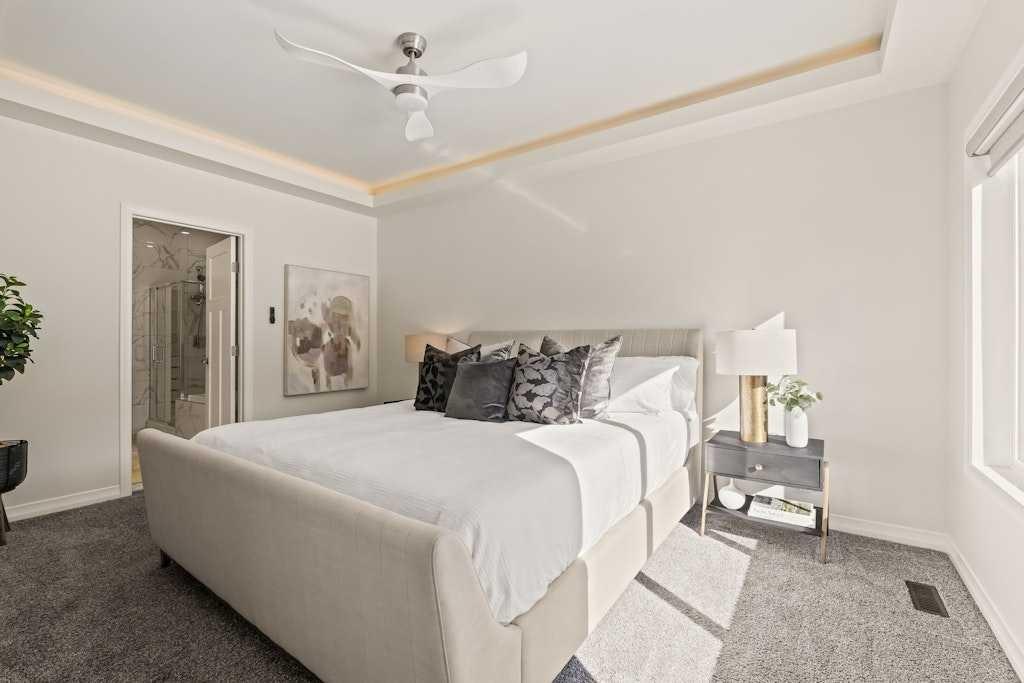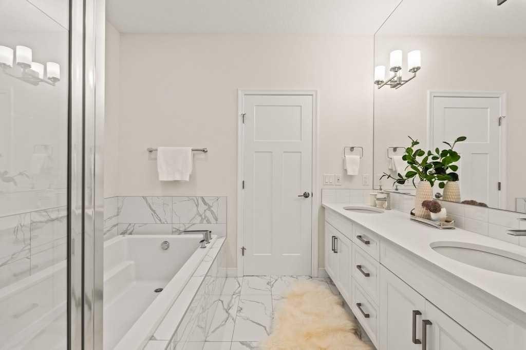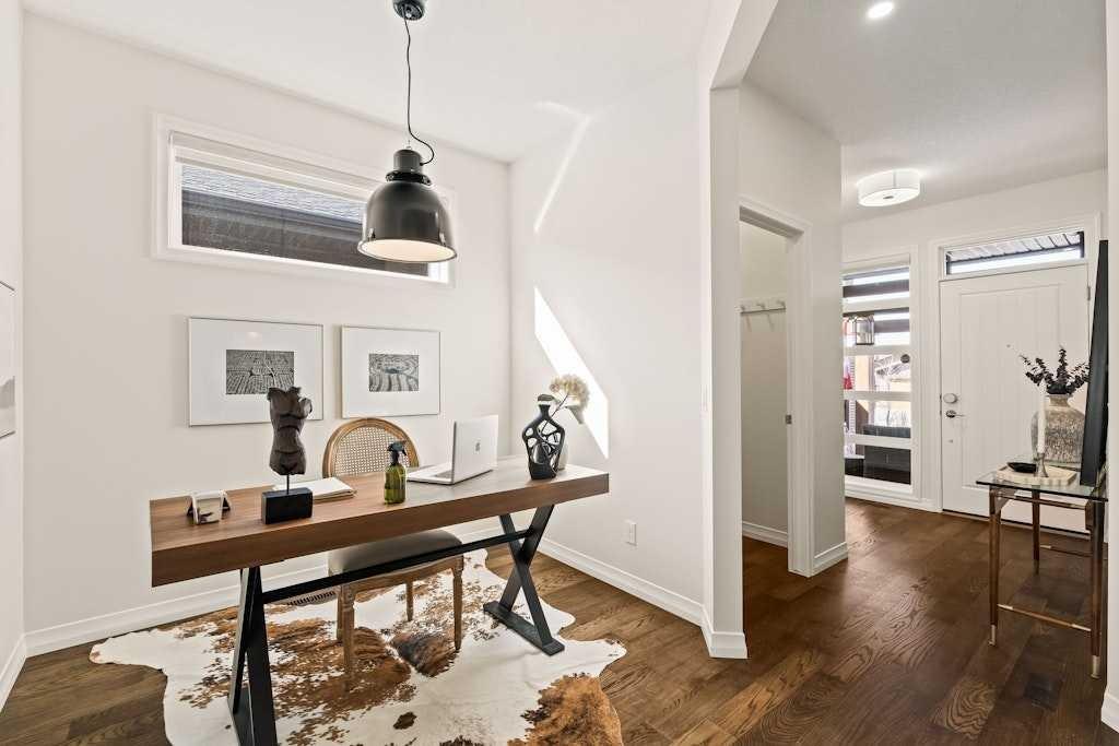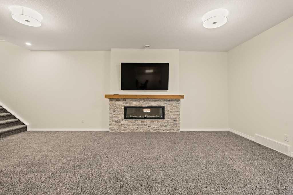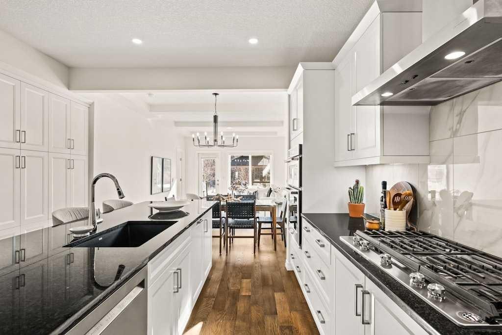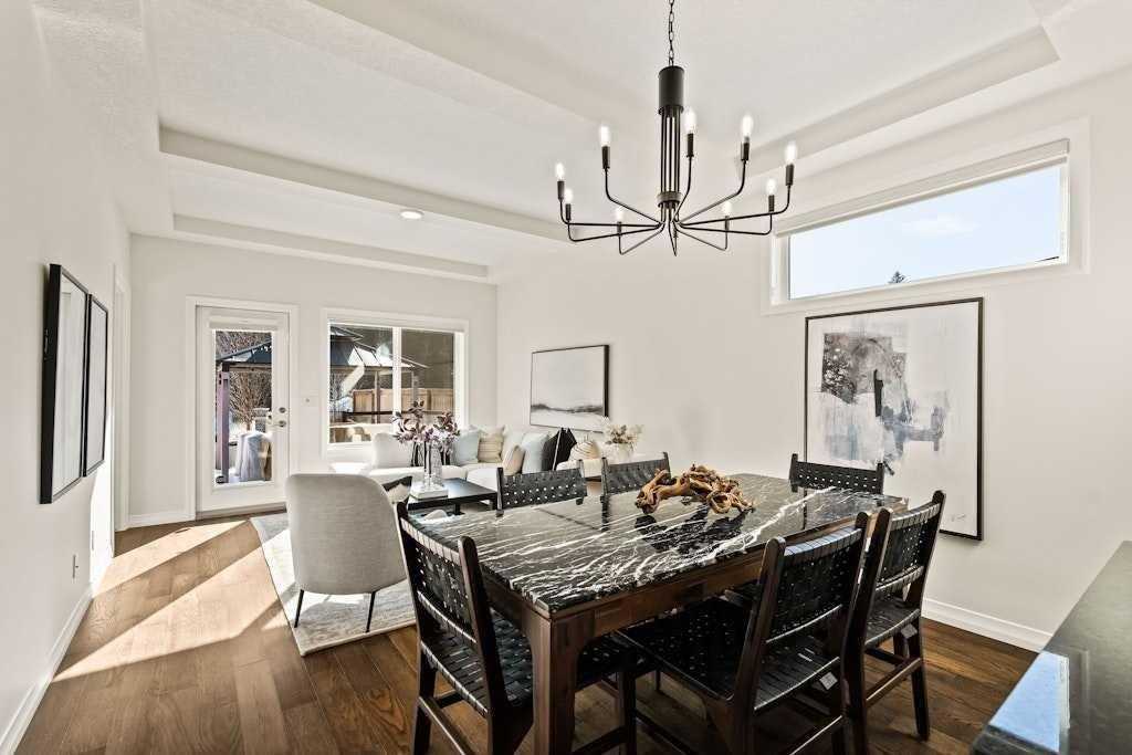 OPEN HOUSE SATURDAY FEB 28th 12-2pm Experience refined single-level living in this impeccably upgraded bungalow villa, quietly tucked away on a cul-de-sac in “River’s Edge”. Backing onto a forested environmental reserve with no rear neighbours, this exceptional property offers privacy plus direct access to the Bow River pathways and Trans Canada Trail—an idyllic setting for those who value both nature and convenience. Thoughtfully built by Jayman for energy efficiency and effortless living, the home features triple-pane windows, active solar panels, dual-zone furnace, UVC air purification, tankless hot water, water softener, EV plug-in, and Ring doorbell system—delivering modern sustainability without compromise. Inside, elevated finishes and custom upgrades are throughout. Professionally painted in 2025 with new Hunter Douglas honeycomb window coverings to enhance the bright and airy interior. High ceilings and expansive windows frame serene views of the landscaped yard and treed escarpment. The open-concept main floor welcomes you with a gracious entry (built-in storage bench) leading to a versatile flex room ideal for a home office or den. The designer kitchen blends style and function with timeless shaker cabinetry, pull-out pantry, oversized island with seating, and premium stainless appliances including a built-in oven and gas cooktop. The adjoining dining and living areas create an inviting space for everyday living and entertaining alike…all while overlooking the rear yard and escarpment. The primary retreat feels like a private sanctuary featuring indirect lighting, ceiling fan, and a luxurious five-piece ensuite with dual vanities, soaking tub, and walk-in shower. A customized walk-in closet with built-in drawers and shelving offers exceptional organization. A powder room and heated single attached garage complete the main level. The fully developed lower level expands your living space with a generous family room highlighted by a striking custom entertainment-wall with fireplace, two large bedrooms, a den/office, full bath, and abundant storage. Laundry is currently located downstairs, with the option to relocate to the primary closet if preferred. Outdoors, the deep southeast-facing lot has been professionally landscaped to maximize enjoyment and privacy. A spacious upper deck with power sunshade overlooks a stone terrace and covered gazebo, surrounded by mature trees, perimeter garden beds, and a full irrigation system—creating a private outdoor retreat. All this with no condo fees. An extraordinary opportunity to own a turnkey villa in one of River’s Edge’s most coveted natural settings. Welcome home…